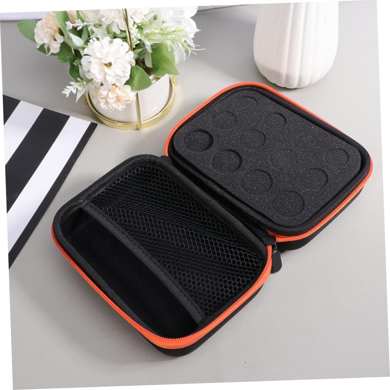 Package Include 2 x storage bag Characteristics - Size: About 16cm* 12cm* 8cm Essential Oils Storage Holder. - Material: EVA Protection Case for Essential Oils. - Color: Orange. 1 x Essential Oils Case Roller Bottle Storage Bag Package IncludingGoods InformationEssential Oils Storage Holder for all your wonderful oils: Hard Shell ( thick hard inner shell ) with High Density Elastic Sponge Storage for Oils helps keep your essential oils safe, secure, organized and available