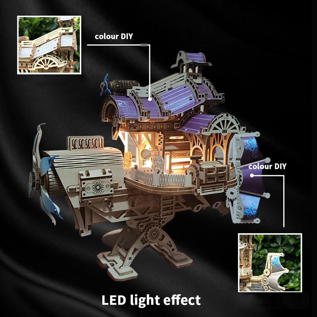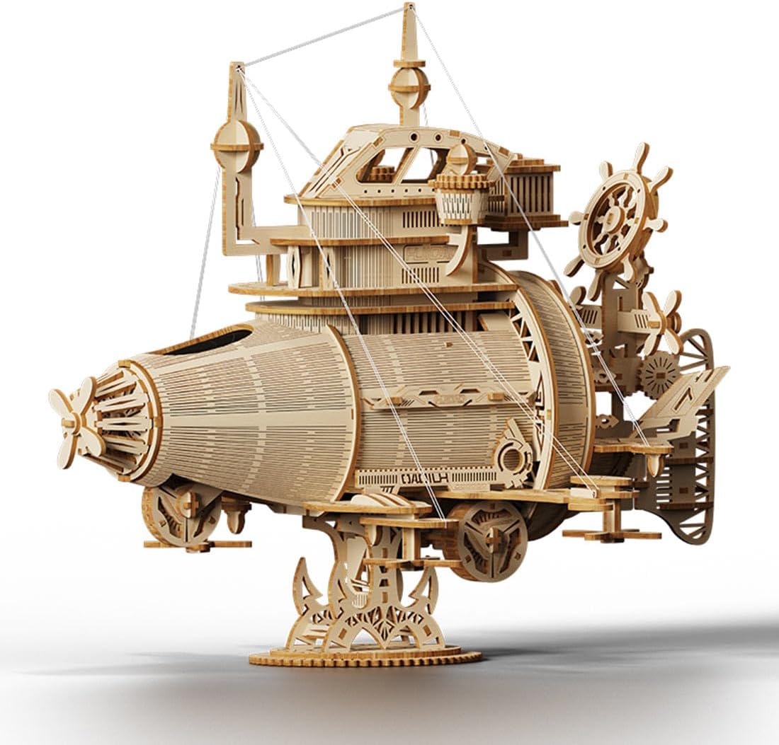 Steampunk Wooden Flyship DIY 3D Flyship Puzzle Specifications: .Material: Wood .Form: Static, some joints are movable .Style: Victorian style, steampunk type .Assembly difficulty: Medium .Assembly Time: 2-3 hours .Packing: Graphic Carton .Ages: 16+Package Including.Assembly set *1.Manual *1.Card set *1.Tool kit *1