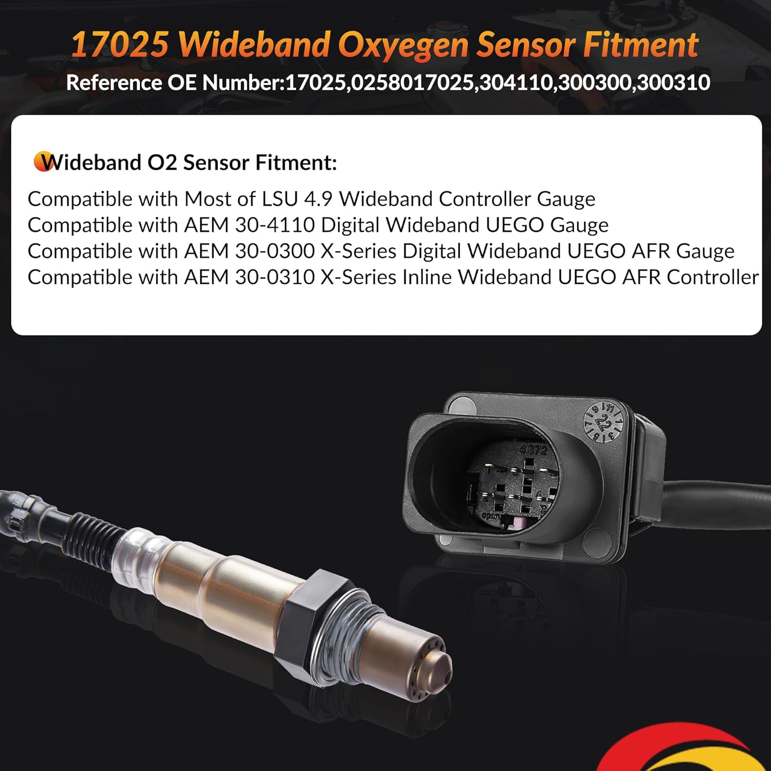 | Specific Uses For Product | Replacement OE 17025 Wideband O2 Sensor Wire Quantity: 5 Terminal Quantity: 6 |