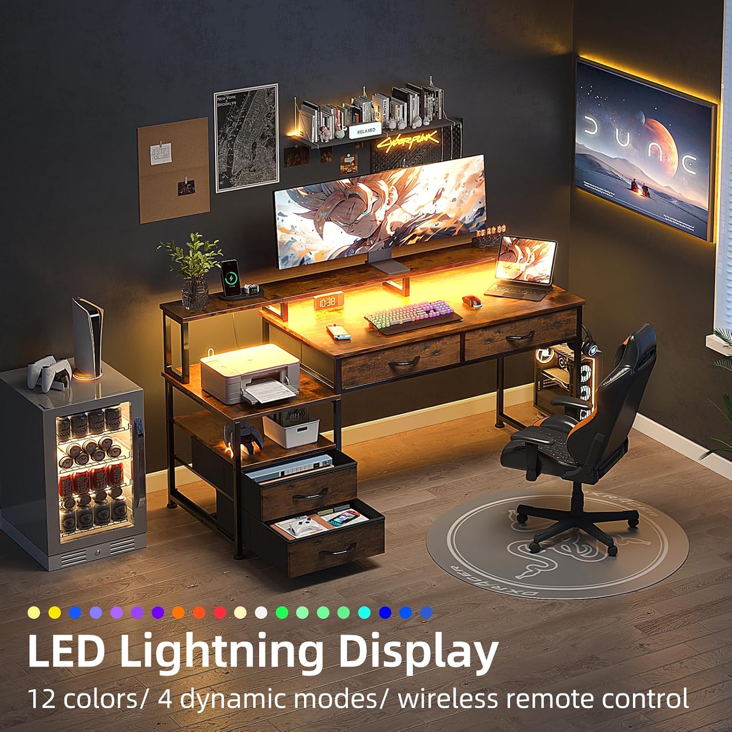 | Included Components | Built-in Outlet, Built-in USB Port, LED lights, Monitor Stand |