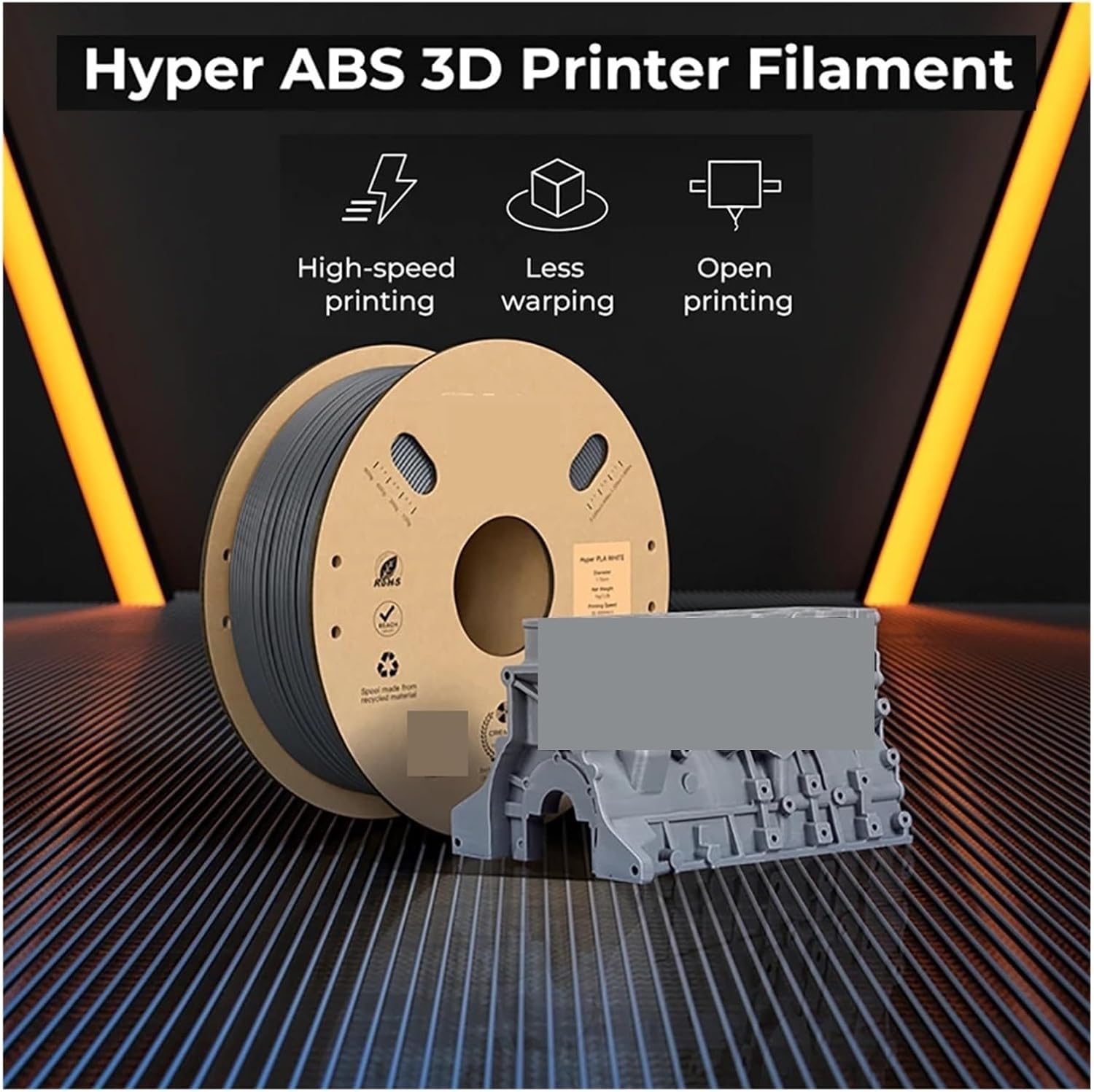 Product ParametersProduct Name:ABS 3D Printer FilamentExtruder Temperature:230-270Hotbed Temperature:75-95Impact Resistance:19kJ/m²Tensile Strength:30.4±0.6MpaBending Strength:48.1±0.2MpaFilamentDiameter:1.75±0.05mmN.W:1Kg/2.2lbG.W:1.29Kg/2.8lbPacking Size:450x440x230mmFeatures:Five Times Faster, More EfficientMake 3D Printing Much EasierHigh Impact ResistanceHigh-temperature ResistanceSafer and More Environmentally FriendlyFive Times Faster, More Efficient By increasing the fluidity of common ABS materials, Hyper ABS makes 3D printing faster and more efficient,allowing you to create more pieces in the same amount of time. Make 3D Printing Much Easier Hyper ABS can release stress well during the print- ing process, thus reducing the shrinkage rate of ABS.No need to close the cavity for printing, it can be successfully printed with common models,effective- ly avoiding problems such as cracking and warping.High Impact Resistance Its printed models are stronger than PLA'sand can be better used for printing parts in stressful environments. High-temperature Resistance The heat distortion temperature of ABS is 80, which is 25higher than that of common PLA,and can be used in environments with Prototyping of ABS higher temperature requirements.Safer and More protect your health. Environmentally Friendly ABS is made from lower residual monomer materials and is formulatedand manufactured to reduce volatiles from thermal decomposition to protect your health.For Ender Series/For CR Series/For Complete machine seriesContinuous machine and filament tests ensure a high degree of adaptability. Made from MaterialsFree Modeling, Online Slicing & Printing Community SharingTHree colors to choose==========Material : ABSForm : SolidOrigin : Mainland ChinaWel