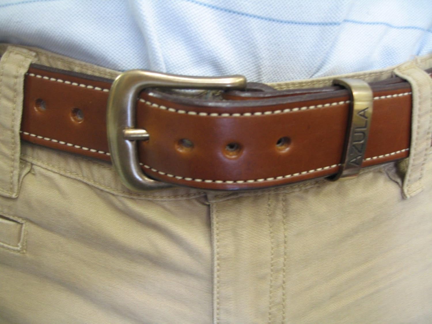 Azula Leather Belts are a heavy duty belt that is 1.5 inches wide, perfect for casual wear or for use as a gun belt. Fully lined with smooth grain leather offering a heavy duty 2 ply belt that won't roll on the edges and is comfortable for all day use. The lining is tightly border stitched with linen thread for a lifetime of use. Azula leather belts come with a brass buckle and brass belt keeper that can be easily changed to your choice of buckle or keeper if you wish. Azula Leather Belts are hand made by master craftsman with over 30 years of Holster and belt making experience. Azula Leather Belts have a lifetime replacement warranty and are one of the finest leather belts you can buy. THIS IS FOR A SIZE 38 TAN BELT We also have belts from 34" - 58" in Tan and Black. IF you need another size or color let us know and we will list the belt for you Auction is for belt only and does not include Holster. ORDER THE BELT ONE SIZE LARGER THAN THE SIZE JEANS YOU WEAR. IF YOU WEAR A SIZE 38 JEANS THEN ORDER A SIZE 40 BELT