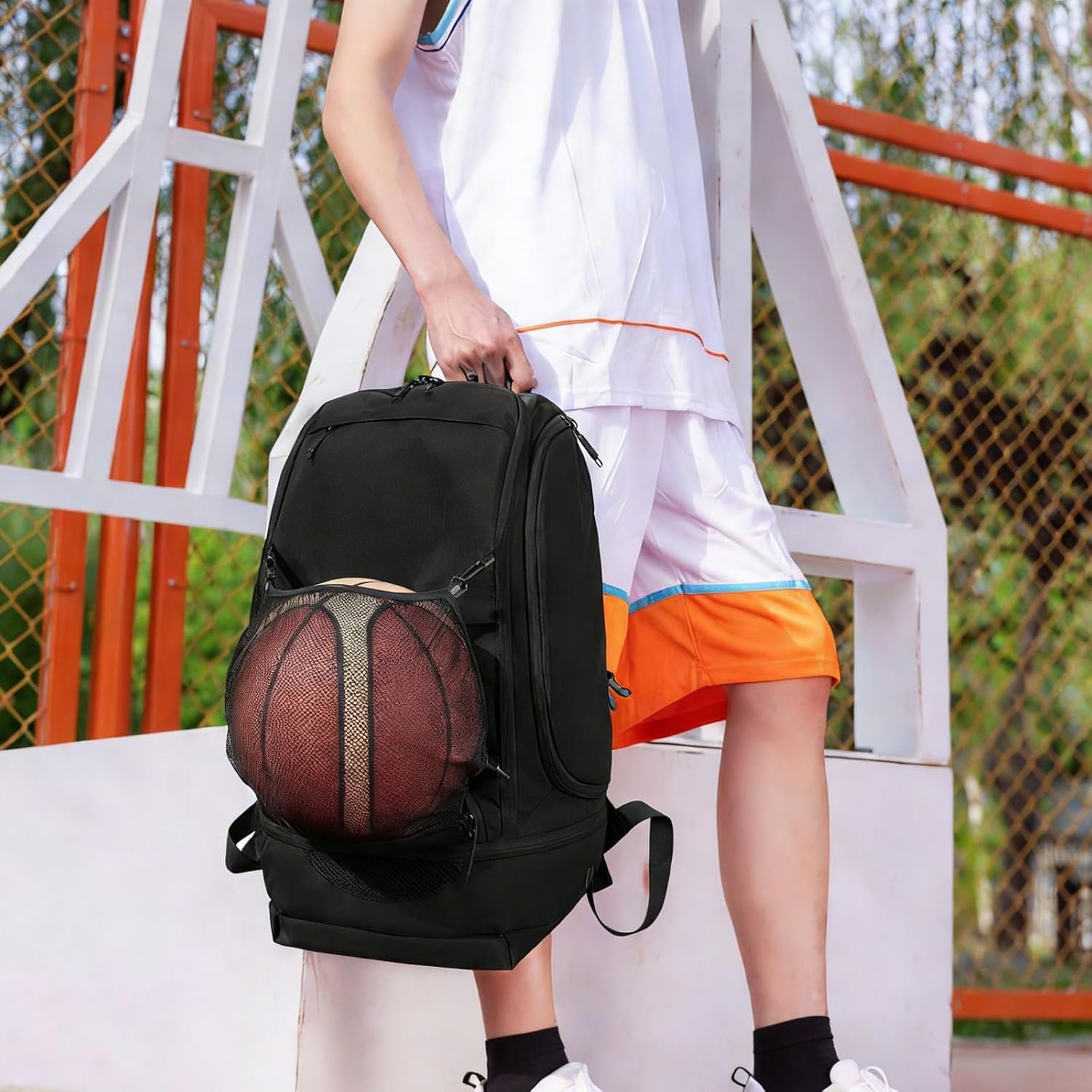 Basketball Backpack Having Separate Wet Dry Sections For Training Gear And Gym Belongings Features: Dry Wet Separation Design: Constructed from sturdy oxford fabric with water features, keeping moist clothes separate from other items after sports Ideal for basketball players who sweat often or need extra clothing, maintaining gear in dry condition Spacious Storage Capacity: Includes smart sections to hold a basketball, footwear, and necessary items, meeting daily practice and game needs Perfect for athletes requiring various equipment pieces, aiding organization while active Sturdy & Tear: Made with thick oxford fabric for resistance against damage, extending product use Especially good for regular outdoor activities or intense sports, enhancing toughness Comfortable Carrying Design: Ergonomically shaped shoulder straps reduce shoulder pressure, minimizing fatigue during prolonged use Great for extended trips or active individuals who walk often, improving convenience Modern & Versatile: Sleek contemporary design combines utility with visual appeal, suitable for sports, daily commutes, or short trips Attracts fashion conscious users valuing both function and appearance Specifications: Substance: Oxford cloth Size: 55x31x22cm Properties: black / blue / red Technical parameters: Wet and dry separation design | Breathable net | Adjustable shoulder straps Usage scenario: Basketball training|Game day|Gym carry Package Includes: Basketball bag×1 Note: Before using the accessory, please check it is compatible Pay attention to the storage methods