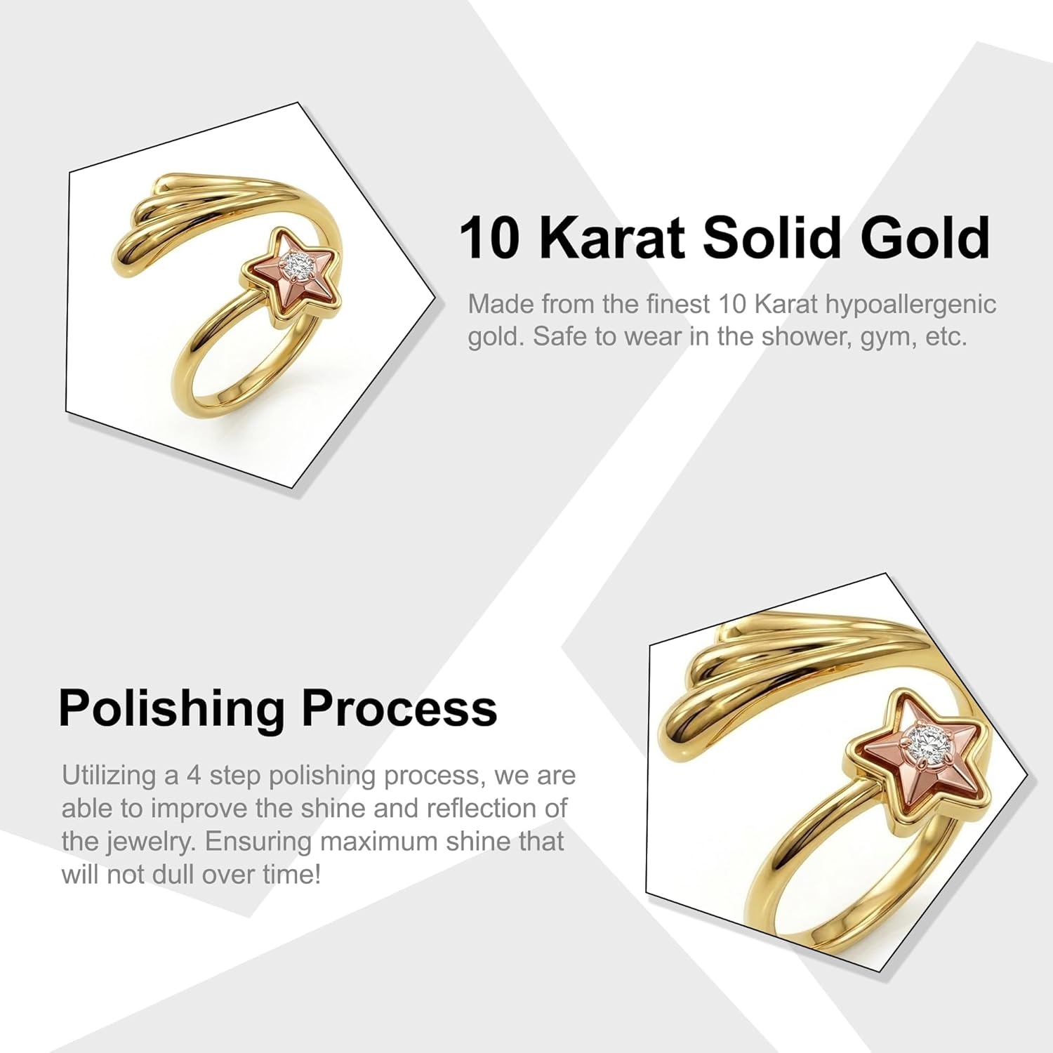 Beautifully handcrafted Gold Shooting Star Ring is made with solid 10 Karat Gold. This makes a fantastic gift choice and will be sure to impress!