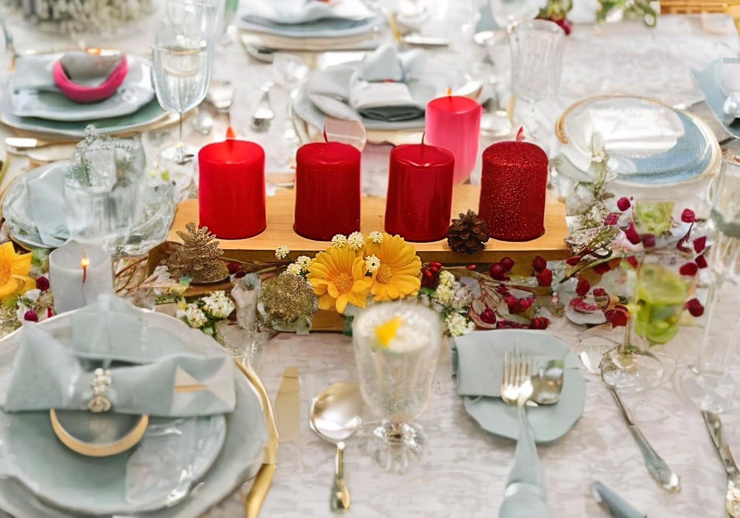 The advent candles in a set of 4 in the elegant Advent red colour scheme - red glitter are the perfect addition to any festive Advent wreath and give your Christmas decoration a stylish touch. These pillar candles are characterised by their compact size of (L x W x H) 5 x 5 x 7 cm, which makes them ideal for inserting into traditional and modern Advent wreaths. The Advent red - red glitter colouring of these candles gives them an elegant look that harmonises perfectly with different decoration styles. Whether classic, modern or minimalist, these candles are versatile and create a festive atmosphere in your home. The simple yet elegant look of the candles fits wonderfully with any colour scheme and can be combined with fir branches, Christmas tree baubles or other Christmas decoration elements. These advent candles are not only suitable for the Advent wreath, but also ideal as table candles or decorative elements in your home. You can arrange these candles on the festive table, on the fireplace or in decorative candle holders. Thanks to their simple elegance, they bring a calm and contemplative mood to the room, which is perfect for the Christmas season. They are also available in a handy pack of 4, so you have a candle available for every Advent Sunday. The combination of the elegant Advent red - red glitter colouring and the high-quality workmanship makes these advent candles an indispensable part of any festive decoration. Whether as part of your Advent wreath, as an atmospheric table decoration or as a gift for friends and family - these candles bring light and warmth to the cold winter days.