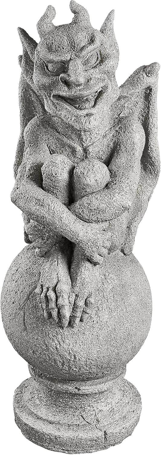 Named for one of the fire and brimstone cities that served the god of wealth and greed, Gomorrah the gargoyle statue embodies the New World works fashioned at the hands of stone masons who crossed the Atlantic and brought their talents to America. Designed to sit on his powerful haunches and peer down from your stone wall or library bookshelf over all he surveys, this Design Toscano gothic icon is a collectible medieval monster. Cast in quality designer resin and finished in faux antique stone from his bat style wings to his demon expression, this Gothic gremlin is a timelessly impressive, architectural icon. 11½ "Wx6½ "Dx11½ "H. 4 lbs.