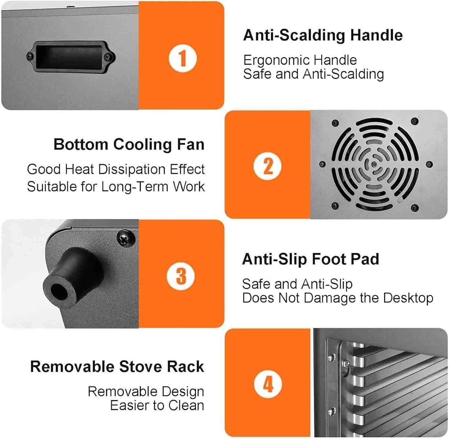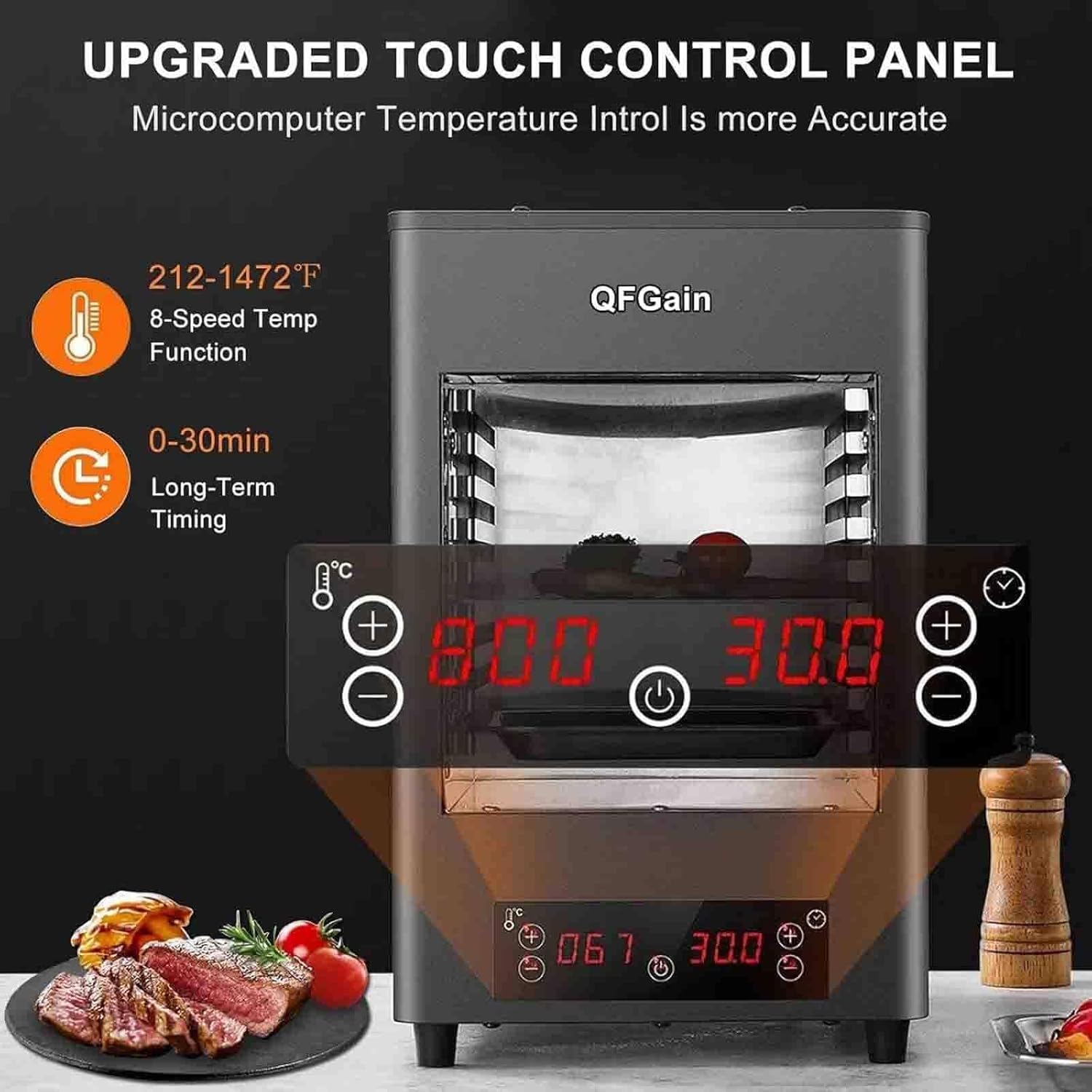 ◆ This electric steak grill features high-temperature rapid heating, quickly reaching high temperatures to lock in the juices and retain the original flavor of the food, while significantly improving cooking efficiency.◆ Product Features800℃ High-Temperature Grilling5-Minute Rapid PreheatingInfrared Wave Heating3/8-Layer Grill Design◆ Product SpecificationsPower: 1700W/3400WHeating Temperature: 100-800℃Cooking Time: 0-10 minutesPreheating Time: 5 minutesTimer: 30 minutesControl Method: Touch Buttons◆ Package Contents1 * Electric Steak Grill1 * Tray1 * Grill Rack1 * Grill Handle★ Notes:1. If you have any questions, please contact us via email before purchg. We will be happy to assist you. Happy shopping!2. Please confirm the dimensions before purchg.