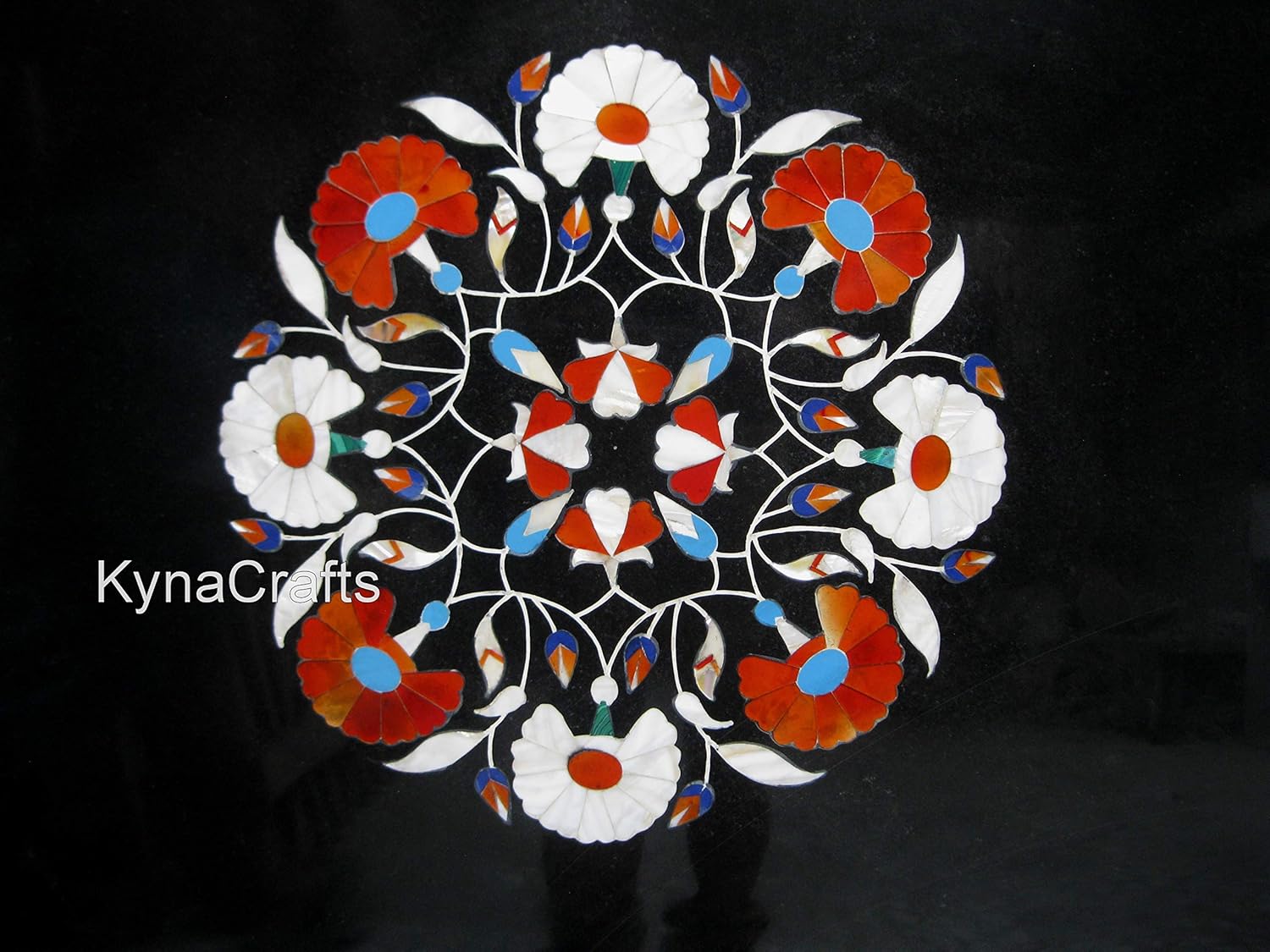 Blue Stone- Lapis Lazuli Light Blue Stone- Turquoise Green Stone- Malachite Red Stone- Carnelian Yellow Stone - Tiger Eye Shiny Multi-color- Abalone Shell White- Mother Of Pearl ( MOP) This is only a table top & Base / Legs are not included. If you want Base / Legs we will get it customized in Wood / Marble as per your requirement.