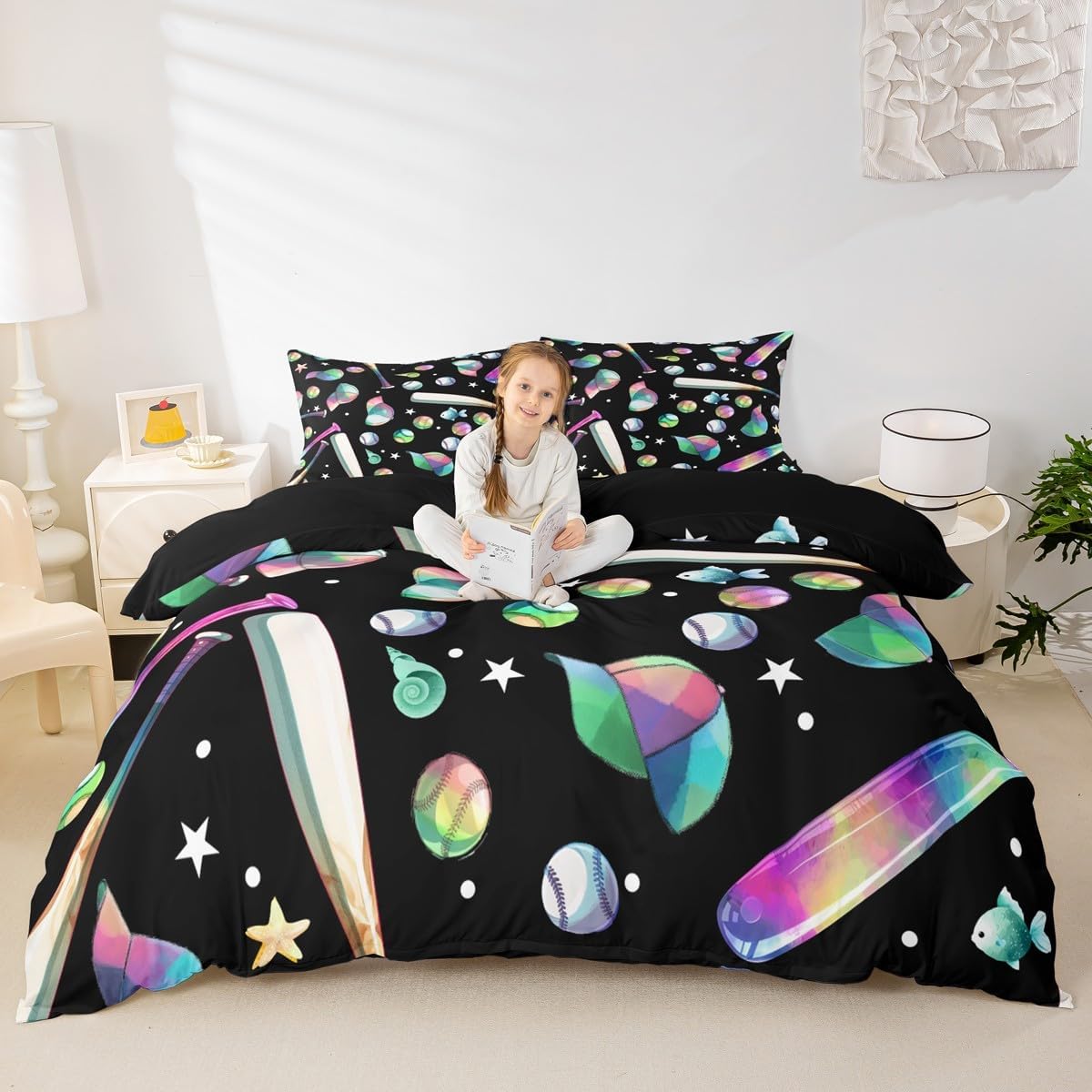 Package Include: Duvet Cover, Pillowcase; High-end Duvet Cover Set Pattern Bedding Set,simply decorating your rooms any time you want, bringing you fresh feel for year round use;Long-lasting:;Made from 100% polyester microfiber,the sheet set offers long-lasting strength, anatural resistance to shrinking and a noticeably soft hand feel;;Size Information::;Twin size : 2 Piece duvet cover set : 1 Duvet Cover 68" x 90",173 x 228 cm , 1 pillowcase 20" x 30",51x75 cm ;Without Comforter;Full size : 3 Piece duvet cover set : 1 Duvet Cover 80" x 90",200 x 229 cm , 2 pillowcase 20" x 30",51 x 75 cm ;Without Comforter;Queen size : 3 Piece duvet cover set : 1 Duvet Cover 90" x 90",229 x 229 cm , 2 pillowcase 20" x 30",51 x 75 cm ;Without Comforter;King size : 3 Piece duvet cover set : 1 Duvet Cover 104" x 90",264 x 229 cm , 2 pillowcase 20" x 36",51 x 92 cm ;Without Comforter;Personalize your bedroom:Beautiful design and colorful print, makes your bedroom unique and brings you a wonderful dream;Washing instructionsMachine wash separately in cold water,hang dry, do not bleach;Occasion:The cute soft duvet cover bedding sets designed for Children ,Adult, Men, Women, Teens; This duvet cover set is also suitable for full seasons, Spring, Summer, Autumn and Winter;