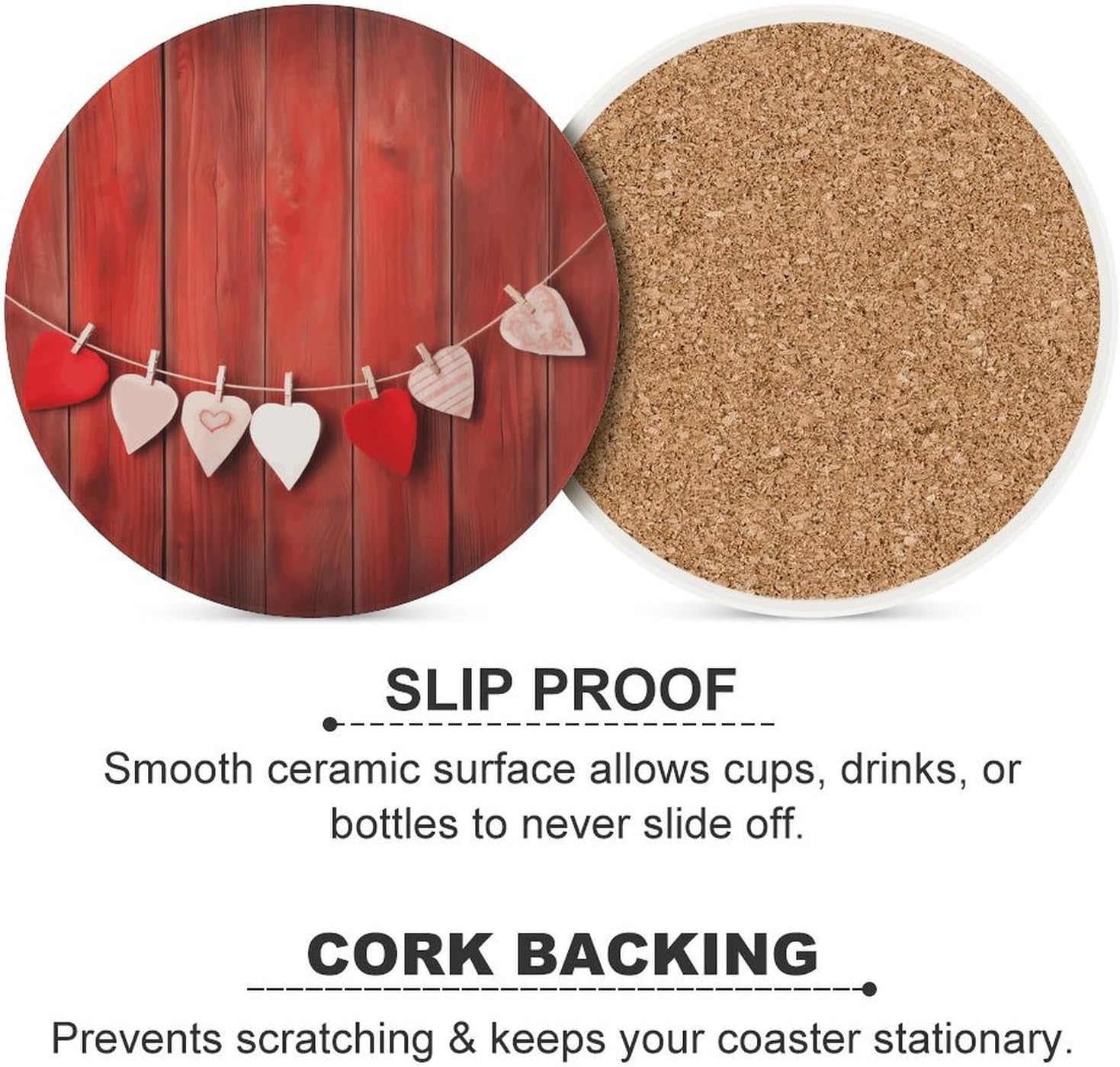 Looking for a simple yet effective way to elevate your space while protecting your surfaces? Meet our round ceramic drink coaster, a must-have addition to your home or office setup. Crafted with a sleek ceramic top and a sturdy cork base, this anti-slip drink round cup mat stays firmly in place, preventing accidental slips and spills. It’s not just a practical accessory—this personality mug mat also doubles as a subtle decor piece, blending seamlessly with your existing coffee table decor, whether you’re going for a cozy, minimalist, or bold aesthetic.Say goodbye to unsightly water rings and heat damage on your favorite furniture. This heat insulation cup mat is designed to handle hot coffee, steaming tea, or icy cold beverages with ease, keeping your tabletops looking pristine. At 4.1 inches in diameter, this drink coaster for drinks is sized to fit everything from your morning coffee mug to your evening wine glass, making it a versatile choice for any occasion. And when spills happen, this easy to wipe drink cup mat cleans up in seconds—no scrubbing or harsh cleaners required.Whether you’re sprucing up your living room, adding a cute touch to your home office, or looking for a thoughtful housewarming gift, our waterproof round coasters have you covered. Available in a range of designs from cute drink coasters to fashion coasters, there’s a style to match every taste. More than just a coaster, this piece is a small detail that makes a big difference in keeping your space tidy and stylish. Upgrade your daily routine with our functional and fashionable coasters today.