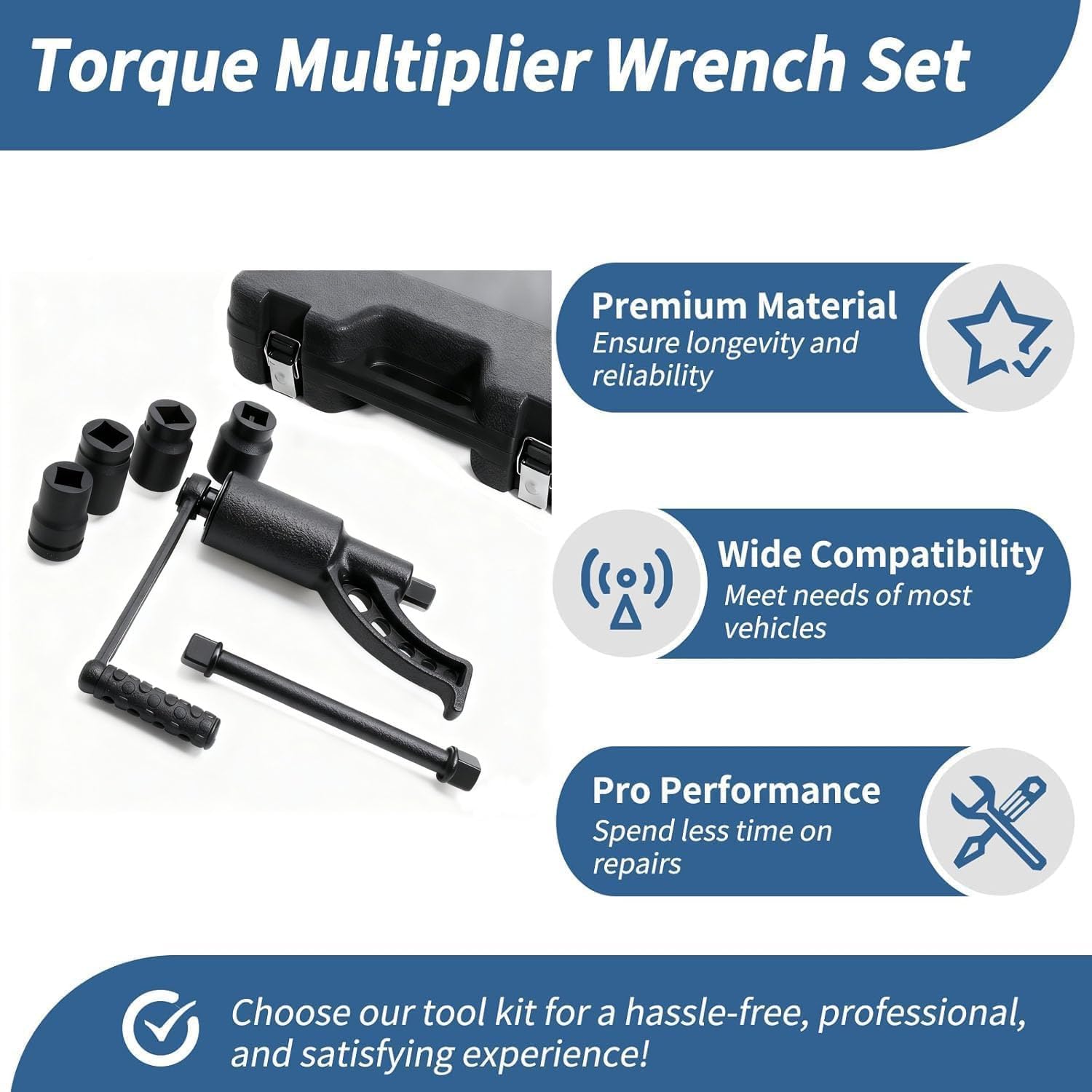 | Included Components | 4PCS CR-V Sockets Set, Heavy Duty Torque Multiplier Wrench Set, Labor Saving Torque Multiplier Wrench, Lug Nut Remover Lug Nut Wrench, Torque Wrench |