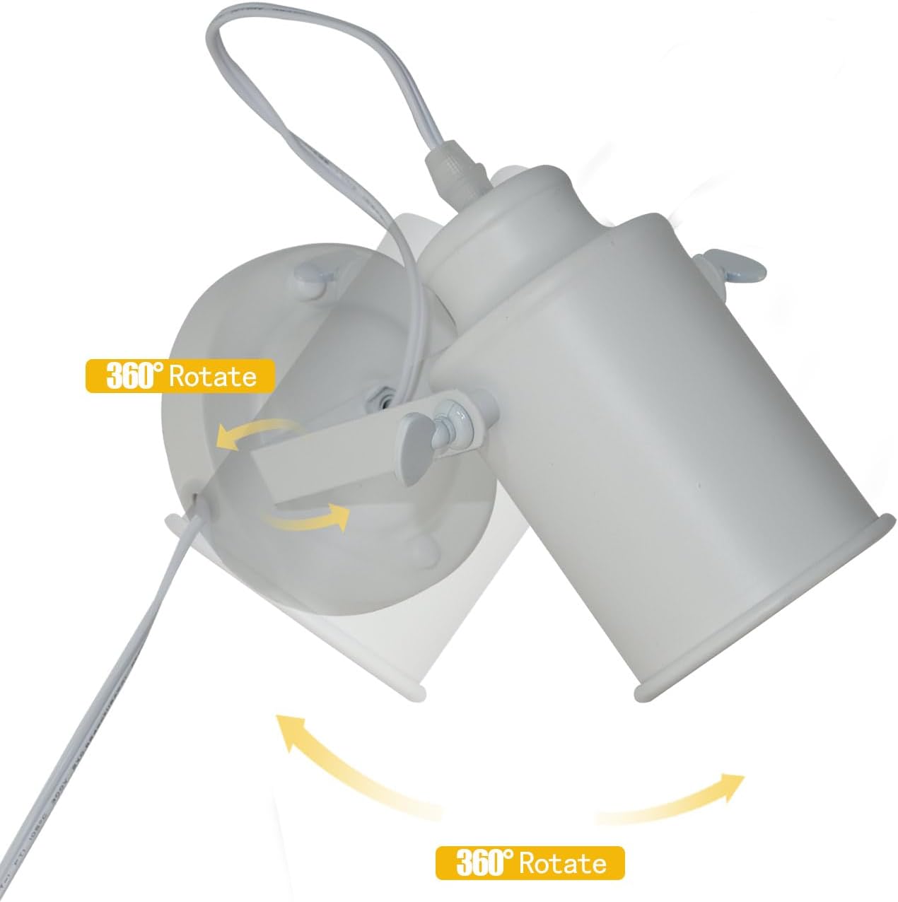 Our vintage wall lights can be mounted as indoor lighting kit such as living room lighting, bedroom lighting, bathroom vanity mirror, kitchen, hallway, coffee shop, bar, office or any other place you want.Advantages: Made of solid metal with white baking finishing, industrial vintage style, this wall track lights sconce clean, durable and lasting. The white head can be rotate with 360 degree left or right, and 330 degree up or down to a suitable lighting effect. Better use as coffee shop, hallway, bar, bathroom vanity mirror or office illumination. E26 bulb not included, it is match for normal e26 bulbs such as spotlights, led bulbs or traditional lights, if you wanna dimming the brightness, please use dimmable bulbs with compatible dimmer switch.This lighting fixture contains a plug, so you can mounted in any other place or just plug in, and make sure mounted it in dry place.Specification:Diameter:4.47"Bulb shade: 6.64" L x 3.32"D Material: Solid Metal Color:white Mounting: Hardwired or plug in, indoor dry location only 360degree adjustable angle, left or right and 330 degree up or down.