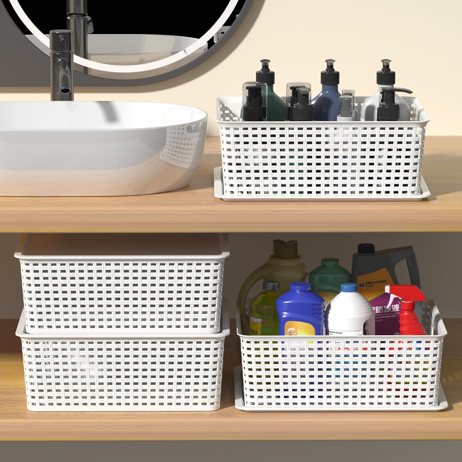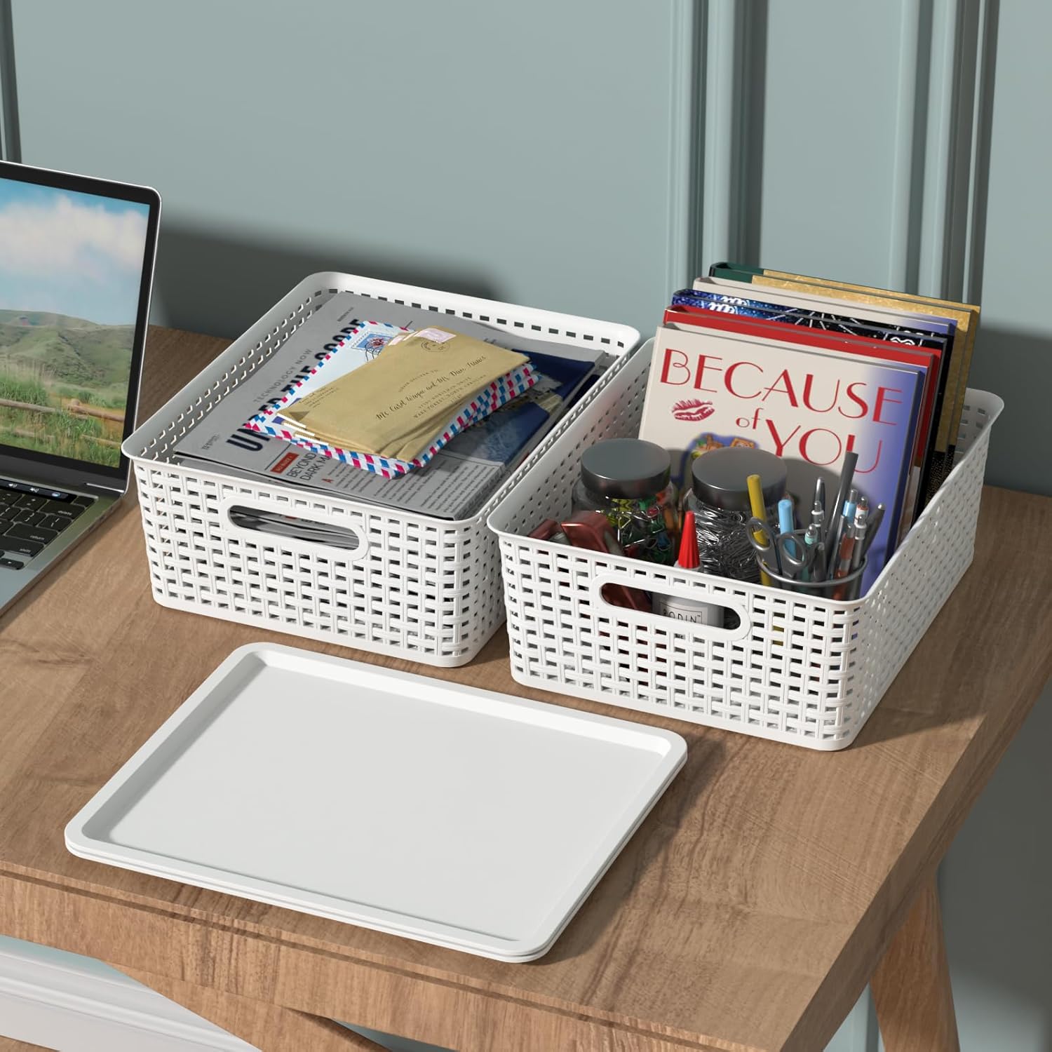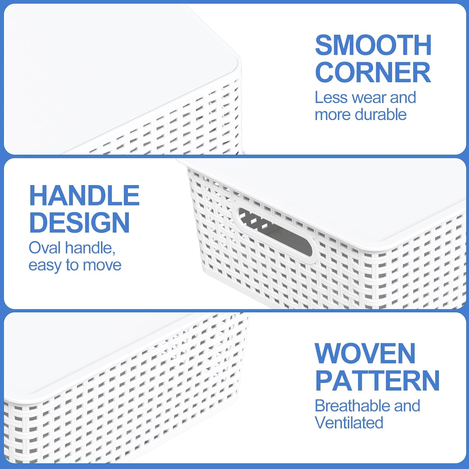 Kekow 6-Pack Plastic Storage Baskets with Lid, 14" x 11.6" x 5.3", Lidded Organizer Bins Shelf Basket for Office, Bathroom, Pantry