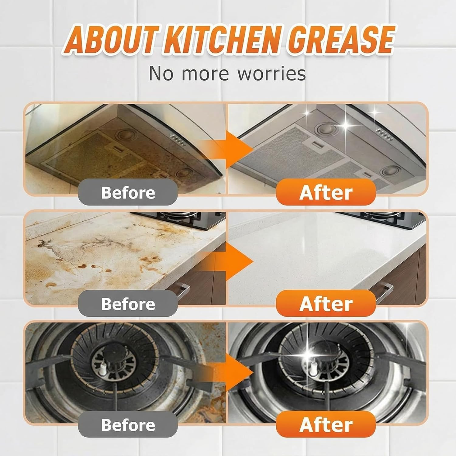 FeaturesFast-acting foaming formula dissolves baked-on grease and grime in minutesAll-purpose design works on kitchen, bathroom, household and car surfacesTough on dirt yet gentle on finishes, no damage or discolorationNo scrubbing needed – spray, wait, wipe for effortless cleaningRinses clean with zero streaks, residue or greasy filmCompact 8 Oz size ideal for daily use and easy storageSpecificationProduct Type: Foaming Heavy Oil Cleaner SprayCapacity: 8 Oz (100ml)Formula: Multi-surface safe, non-damaging degreaserApplication: Kitchen stoves, ovens, range hoods, counters, tiles, wood floors, car interiorsFeature: Foaming action, fast grease dissolution, residue-freePackage Include1 x Kitchen Heavy Oil Cleaner Spray (8 Oz)1 x User Guide