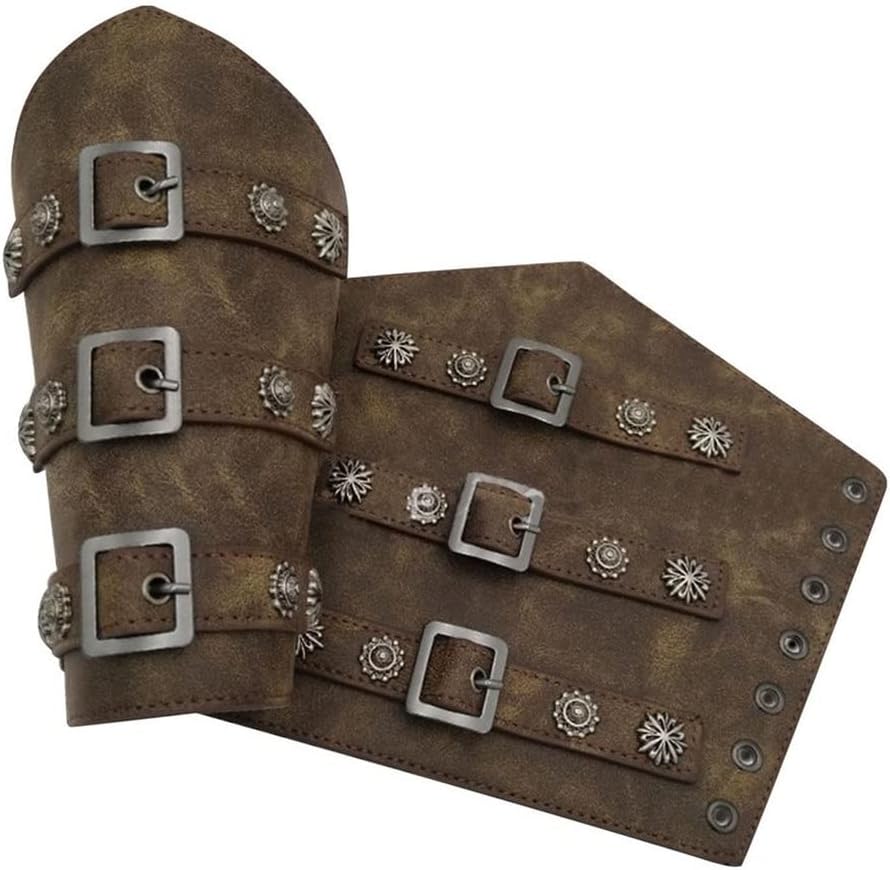 Feature:Retro and Practical: The steampunk armor cuff gauntlet set is retro and practical.Adjustable Size: The arm guards are adjustable.Multiple Purposes: Great for Costume, Festival, or Everyday Use!Universal and Useful: Measures about 7.4inch in length, fits most wrist sizes.Package Includes: The package includes 2 armor cuffs.Material: NylonColor: Green bronze,Dark BrownSize: about length - 19cm/7.4inch, diameter - more than 8cm/3.14inchWeight: about 260g/pairPackage Contents:1 * Leather wrist guardnotes:Light shooting and different monitors may cause the color of the object in the picture to be slightly different from the color of the actual object. The allowable measurement error is +/- 1-3cm.Due to the differences between different monitors, the picture may not reflect the actual color of the item. Thanks!