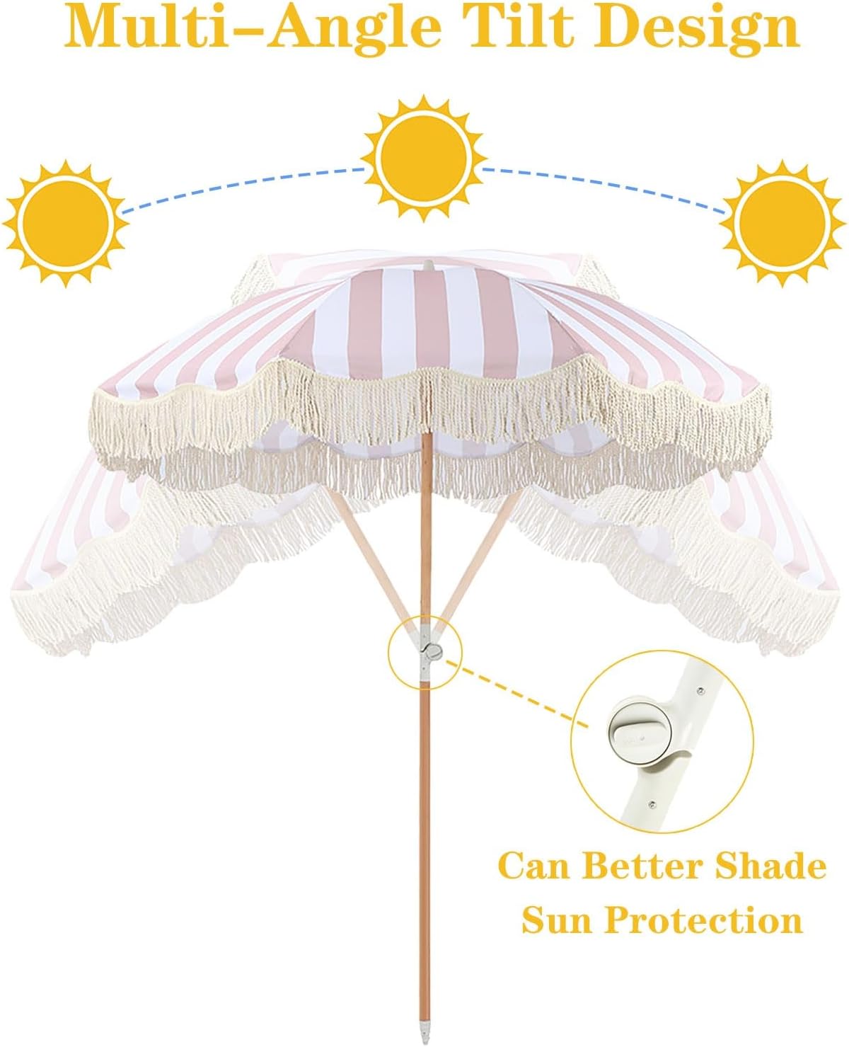 Our Umbrella Fabric Is Made Of 100% Polyester Fabric, Strong And Durable, Flexible, Not Easily Deformed, Corrosion Resistant, Sun Resistant And Easy To Clean, Which Is Loved By People. With A Solid Wood Shaft, 8 Bones And A Tilting Design To Withstand High Winds, Sturdy And Durable For Better Shade, And A Fringed Edge For Both Uniqueness And Elegant, The Tassel Design Umbrella Will Look Great On Your Patio Or Outdoor Space And Is Ideal For Backyards, Lawns And Gardens.❦ Product Name:Fringe Umbrella❦ Umbrella Fabric Material:Polyester Fiber❦ Umbrella Bone Material:Fiberglass Bone❦ Umbrella Rod Material:Beech Wood❦ Unfolding Size Of Umbrella:L180cm X H215cm/L6ft X H7ft❦ Fringe Length:150mm/5.9in❦ Curvature Of The Umbrella:200cm/6.5ft❦ Rod Diameter:32mm/1.2''❦ Umbrella Opening/Retraction Method:Manual❦ Umbrella Bone Quantity:8 Sticks❦ Packing List:Umbrella X1 (Without Base)❦ Function:Can Tilt , Waterproof, Sunscreen, Windproof, Breathable,Foldable❦ Warm Tips:This Umbrella Has No Base. In Extreme Weather, Please Close The Umbrella To Extend The Use Time.