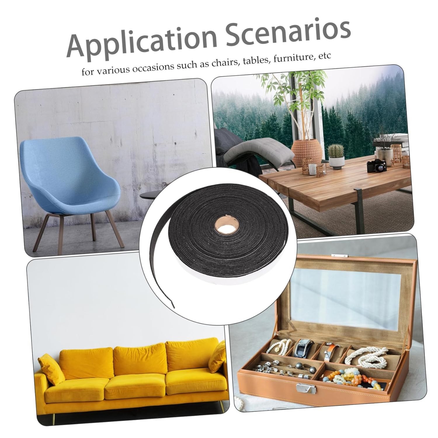 Package Include 5 x roll of felt strip Characteristics -Color:As Shown Hardwood Floors Furniture Pads -Size:1500.00X2.50X0.20cm/589.50X0.98X0.08in Furniture Pads -Material:Felt Felt Table Corner Cushions - Thickened felt can reduce friction, wear resistance and noise reduction Felt Tape. - These foot pads are non-skid and wear-resistant, protecting furniture and floors Protective Mats. - Suitable for furniture such as tables and chairs, wooden furniture, wooden beds, chairs, tables, sofas, beds, pianos and other household furniture Felt Stickers. - Installation is simple and convenient, widely used, and can be tailored according to actual conditions Felt Pads For Furniture. - pasting performance, firm and not easy to fall off. Enough quantity of the covers can meet your different needs Furniture Felt Pad.Goods InformationFurniture Pads These furniture legs pads are suitable for home, office, restaurant, school, cafe shop.Furniture Feet Mats The felt furniture pads for hardwood floors can help guard your wood floor, reduce friction and noise.Furniture Felt Tape Suitable for most chairs, easy to install, provide you more flexibility