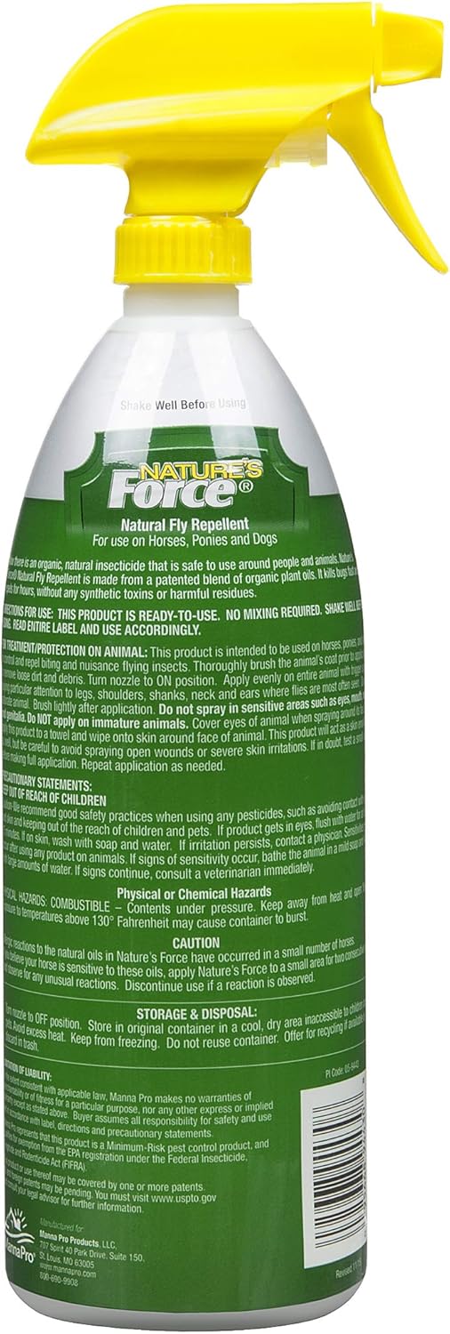 For use on horses, ponies and dogs. Natural Fly Repellent. 24 hour control. Organic Knockdown and Kill. Safe around children and pets.