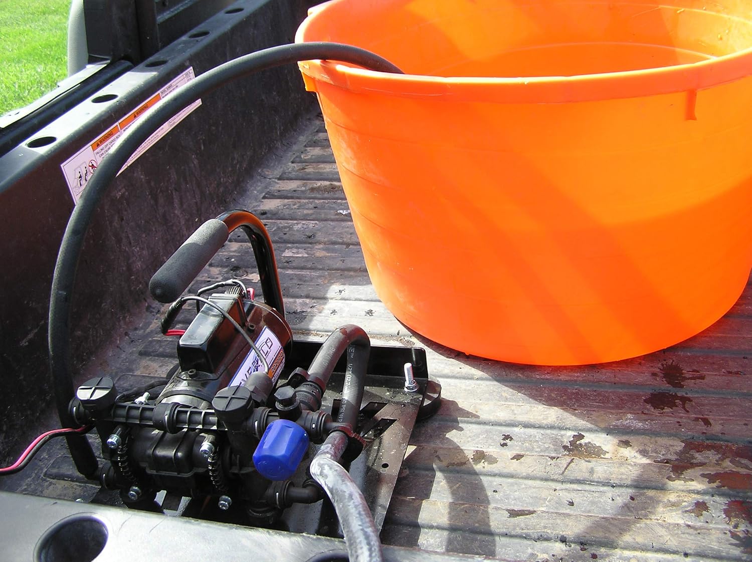 With just a drop of a hose and a 12 volt connection, you are ready to spray with the Master Manufacturing Portable High-Pressure Tree Sprayer. With any tank reach up to 200 PSI with an incredible pumping system that includes a robust Everflo 2. 0GPM high-pressure plunger pump and adjustable pressure regulator. This pumping system provides easy priming, exceptional durability, and superior resistance to corrosive chemicals. No need for ladders and step stools as this system can reach up to 30 feet vertically and 35 feet horizontally with the included adjustable turbo flash spray gun. Depending on the application, adjust the spray gun on the fly from a steady stream to atomized mist. Besides tall trees this unit can be used on orchards, vineyards and protecting livestock from pests. Backed by one year on pump & components.