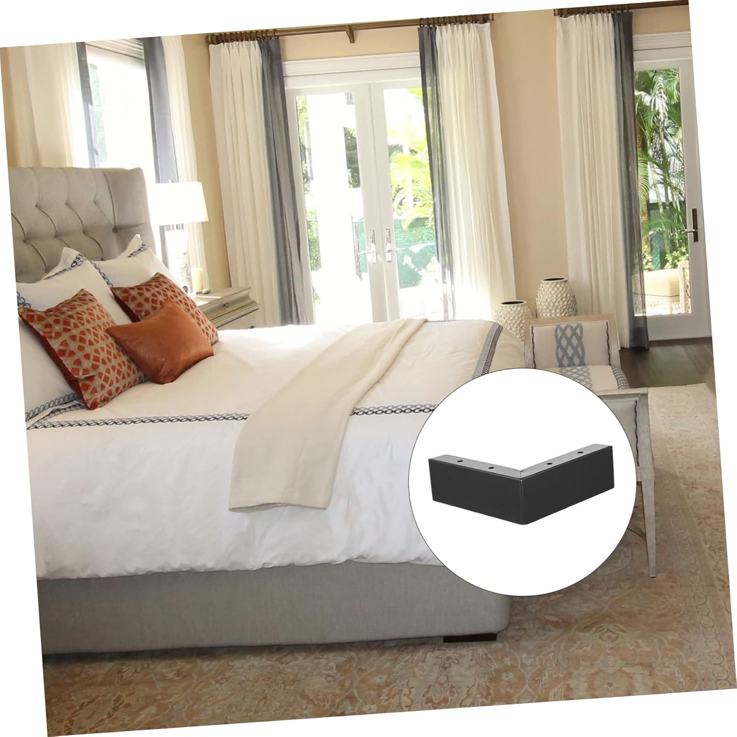 Package Include 4 x Furniture Pads 16 x Screws Characteristics -Material:Iron furniture foot riser - Color: Black furniture risers - Size: 5.00X2.50X14.70cm/1.97X0.98X5.78in furniture leveler - Unique shape design can let it adapt to different of furniture legs, to better satisfy your needs furniture levelers. - Fits furniture legs such as beds, sofas, couches, cabinets, tables, chairs, and refrigerators furniture leg risers. - Made from iron materials with detailed workmanship, it is safe, and durable for long servicing time leveling feet. - Can withstand the weight of the heavy furniture in your home or office, reduce, noise, make the position under the furniture larger furniture risers for sofas. - Iron pad to avoid the feet of the furniture from moving and reduce vibration, also the floor from scratches table leg levelers.Goods Descriptionleg levelers for tables Made from iron materials, firm and sturdy, suitable for most furniture like table, desk, chair, bed and so on.furniture risers for sofas professional and convenient padding block for your home furniture? This riser is a choice for you.furniture support legs It has the advantage of noise reduction, scratch proof, durable for long time to use