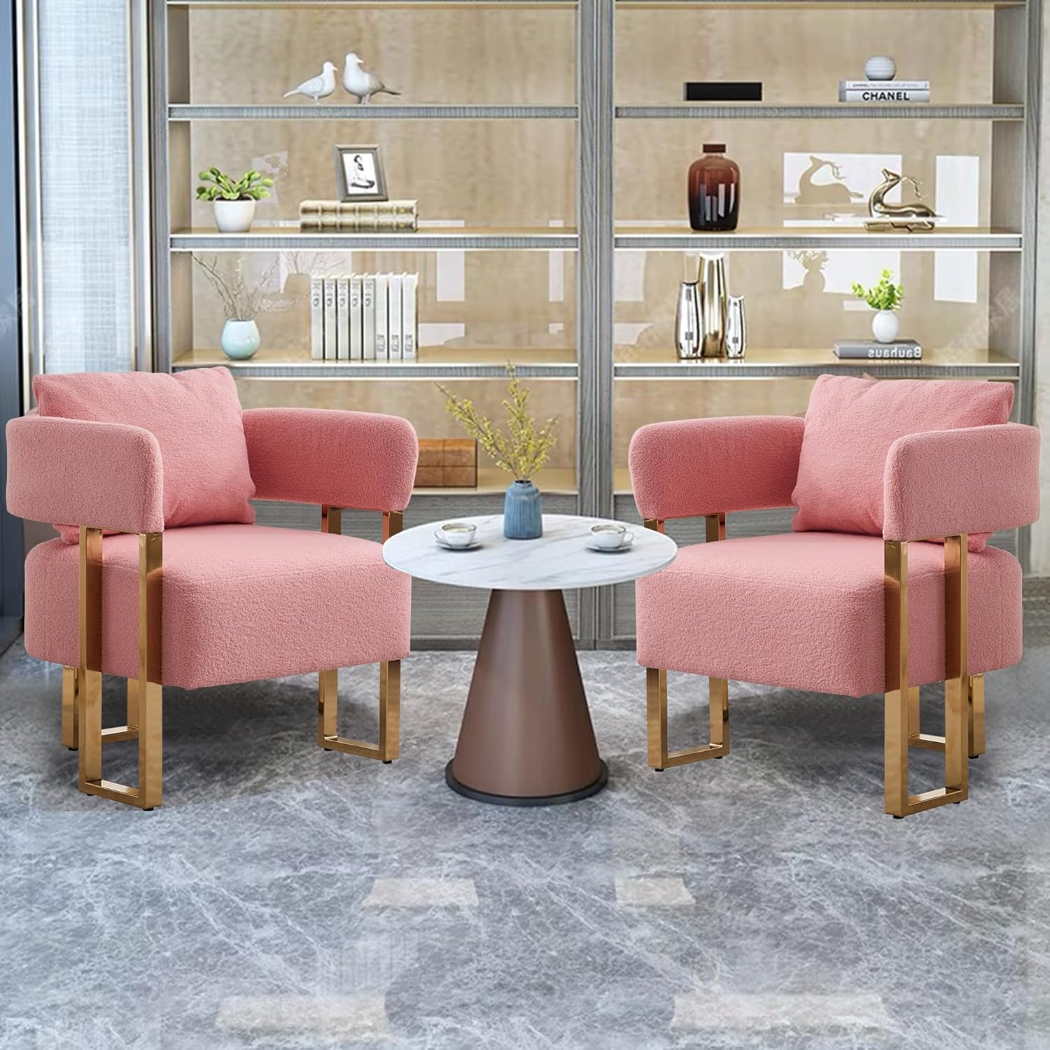 This exquisite oversized accent chair redefines relaxation with its perfect harmony of plush comfort and sophisticated design. The ultra-soft teddy fabric upholstery invites you to experience cloud-like comfort, while the gleaming gold-tone legs add a touch of modern elegance to any interior. Supreme Comfort Engineered for Relaxation Generously padded with high-resilience foam that maintains its shape Ergonomic back support designed for optimal comfort Roomy 23.2" seat width accommodates all body types Premium Quality Construction Durable teddy fabric resistant to everyday wear Reinforced stitching at all stress points Sturdy metal frame with protective non-slip foot caps Effortless Style That Complements Any Decor Timeless barrel silhouette blends with various design aesthetics Versatile neutral color palette for easy coordination Eye-catching metallic legs as a stylish accent Thoughtful Design Details Lightweight yet stable construction Easy-to-clean fabric surface Balanced proportions ideal for compact spaces Simple Assembly Process Straightforward instructions with all necessary hardware included Quick setup in under 20 minutes Tools provided for your convenience Versatile Placement Options Perfect as a reading chair in bedroom corners Makes an elegant addition to living room seating arrangements Ideal for creating cozy conversation areas Quality craftsmanship in home furnishings Comfortable seating that doesn't compromise on style Versatile pieces that adapt to different spaces Thoughtfully designed furniture with lasting value Picture yourself unwinding after a long day, nestled in the plush comfort of this beautifully crafted chair. Its inviting softness and supportive design create the perfect retreat for moments of relaxation, while its stylish appearance enhances your living space. Complete Your Space Today with this exceptional blend of comfort and design that will become your favorite spot to relax, read, or simply enjoy a moment of tranquility.