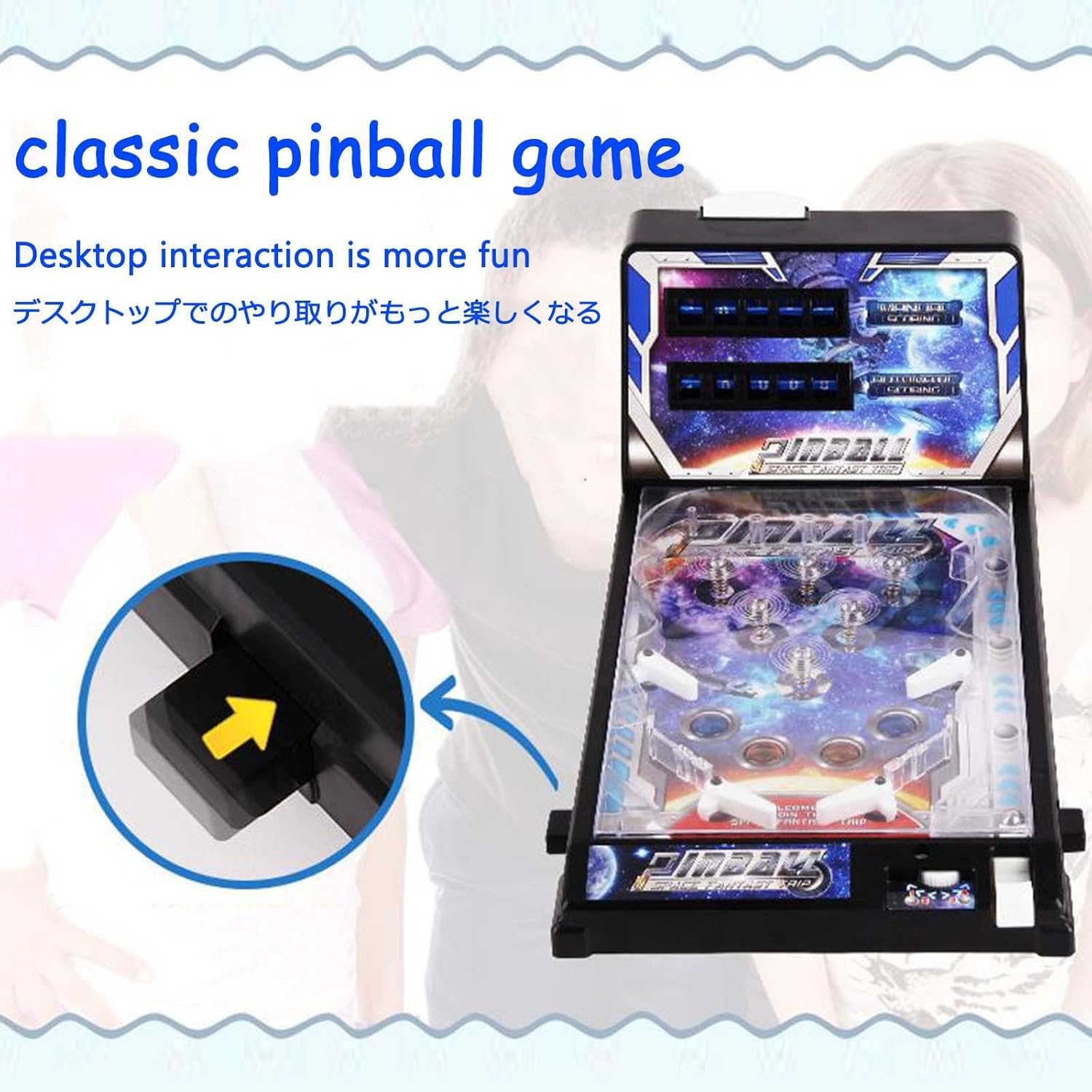 Every press of fingertips stimulates Preschooler's brain, beating numbers cultivate Preschooler's response ability, and rolling marbles attract eye. Cooperation of hands, eyes, brain and ears makes whole game full of excitement and fun. Your Preschooler will love it very muchProduct SpecificationProduct Name: Tabletop arcade gameMaterials: Upgrade plasticPackage Size: 60x7.5x27cmProduct Size: 42x27x24.5cmProduct Weight: 1600gPackage Weight: 2000gPacking: Pinball Game Machine x 1How to use: Pull pinball ejector on bottom right to make pinball enter panel of game machine, press pinball controllers on both sides to control pinball to hit spring in middle of game machine, if it hits spring, game machine will make a sound and Lights, and counted into score, otherwise, pinball machine will not emit lights and sounds, and will not be counted into score