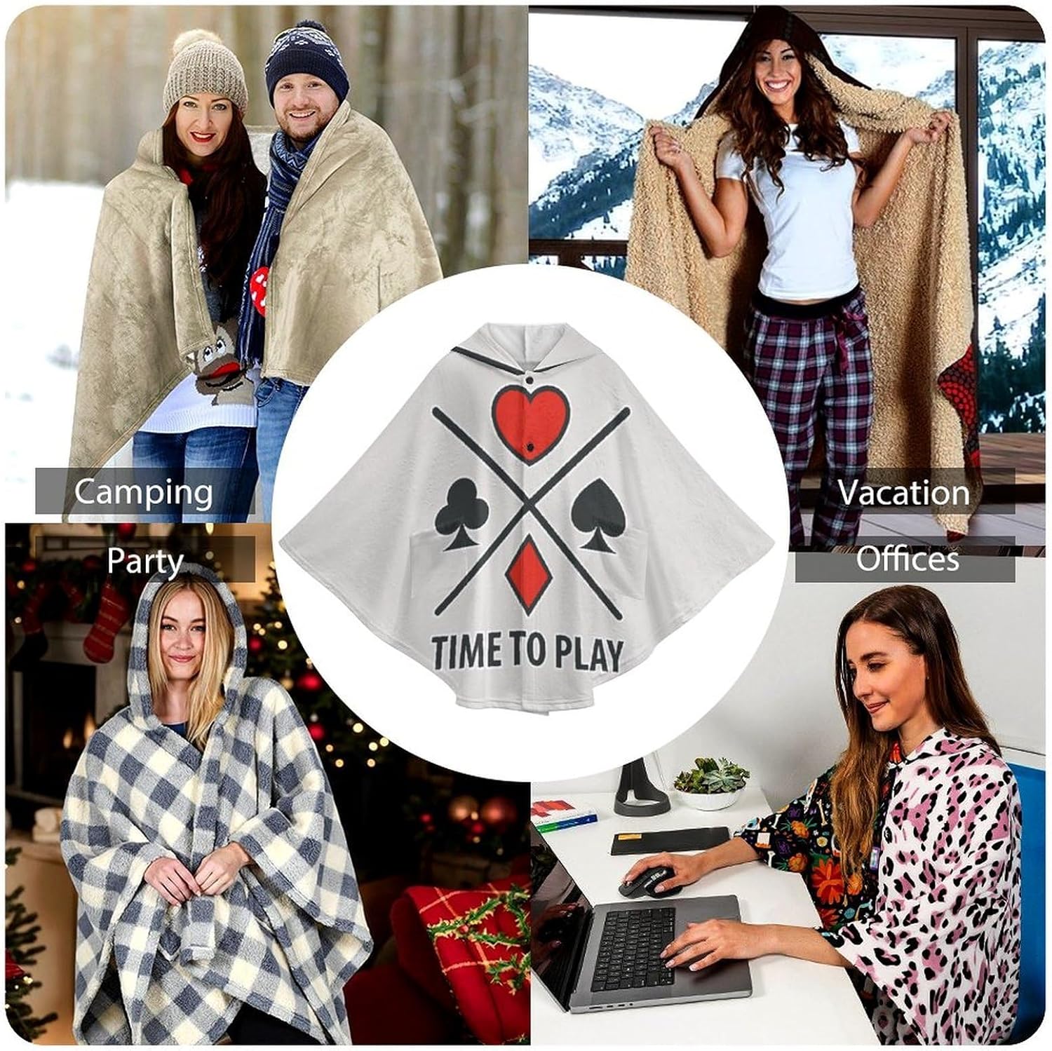 The wearable blanket is made of soft and comfortable flannel fabric, which makes you feel warm in spring, autumn and winter. It has a cape-like shape, a button closure for easy wearing and taking off, and two pockets.