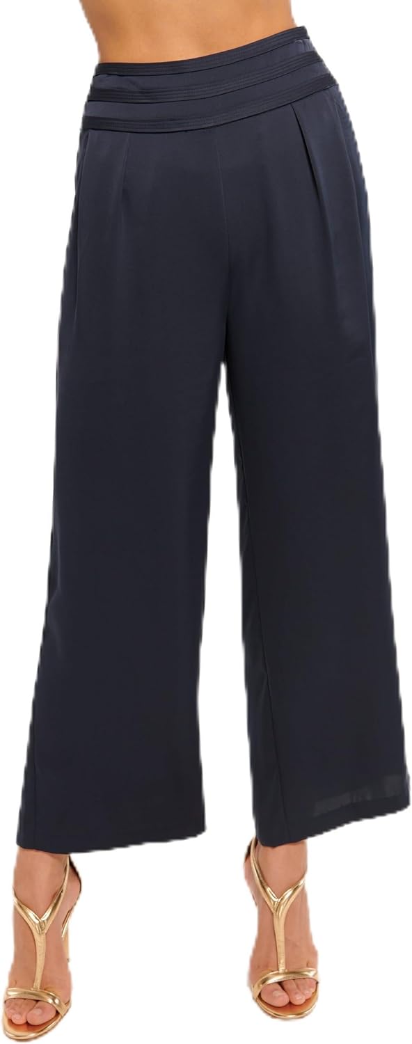The Cropped Joss Pant by Ramy Brook is a sleek, wide-leg style designed with a softly pleated front and a chic, banded waistband. Its cropped length and fluid drape give it an effortlessly polished look—perfect for dressing up or styling with your favorite elevated basics.