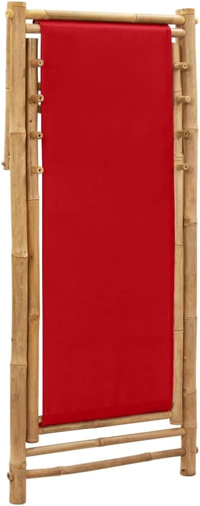 Product Description: Upgrade your outdoor relaxation with this Red Canvas & Bamboo Deck Chair, designed for comfort, durability, and versatility. Made with a sturdy bamboo frame and breathable polyester canvas, this deck chair provides a natural aesthetic while ensuring long-lasting performance for both indoor and outdoor use. With its 4-position adjustable backrest, you can effortlessly switch between different reclining angles to suit your relaxation needs. The sling-style seat conforms to your body for superior ergonomic support, making it perfect for lounging, sunbathing, or reading. Designed for convenience, this foldable deck chair is easy to store and transport, making it ideal for small spaces, balconies, patios, porches, gardens, and even beach or camping trips. Product Specifications: Canvas Color: Red Material: Bamboo Frame, Polyester Canvas Overall Dimensions: 23.62” W x (42.5-48.4)” D x (24.4-36.6)” H Folded Size: 23.62” W x 53.15” D x 3.94” H Adjustable Positions: 4 Reclining Angles Assembly Required: Yes Cushion Included: No Enjoy style, comfort, and functionality with this elegant and practical outdoor sling chair—perfect for any relaxation setting!