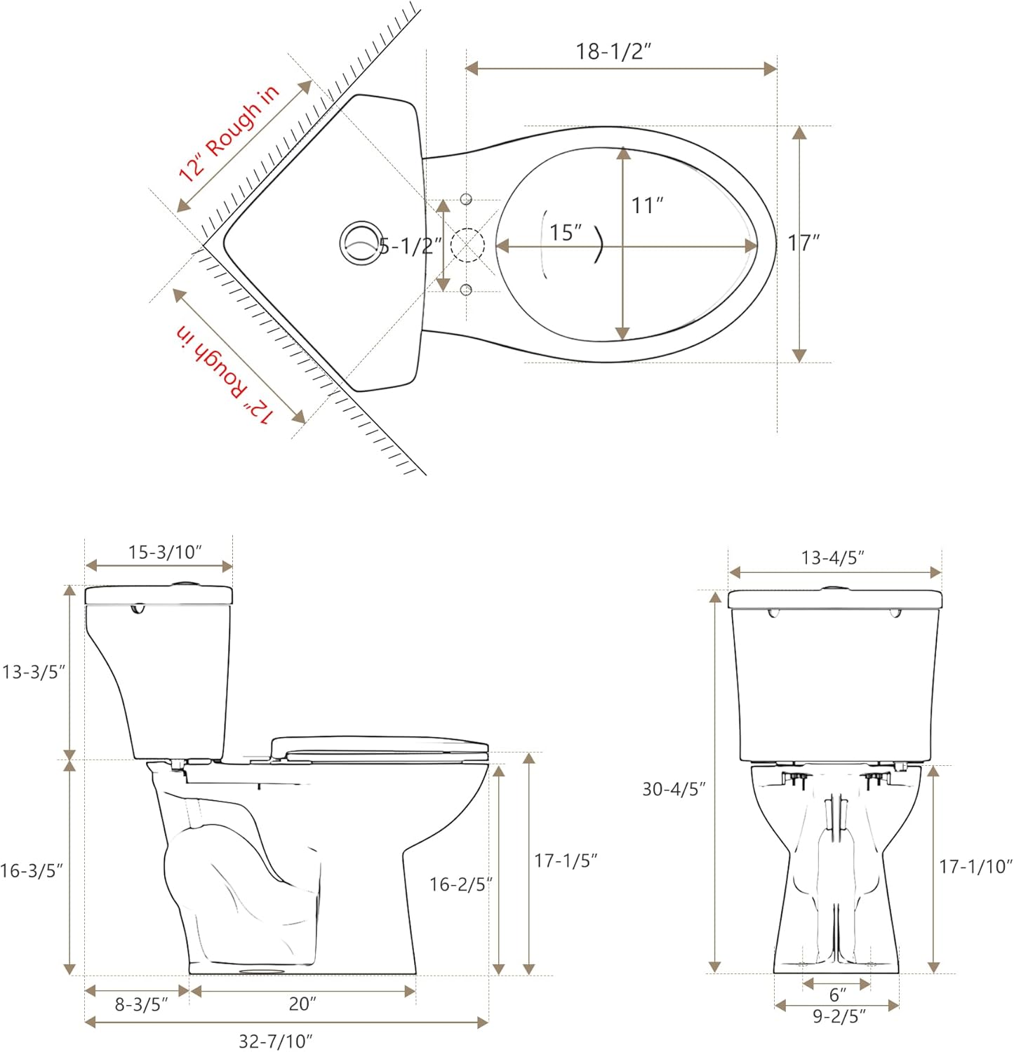 | Included Components | Toilet Bowl, Toilet Cover, Toilet Tank, Water Accessories |