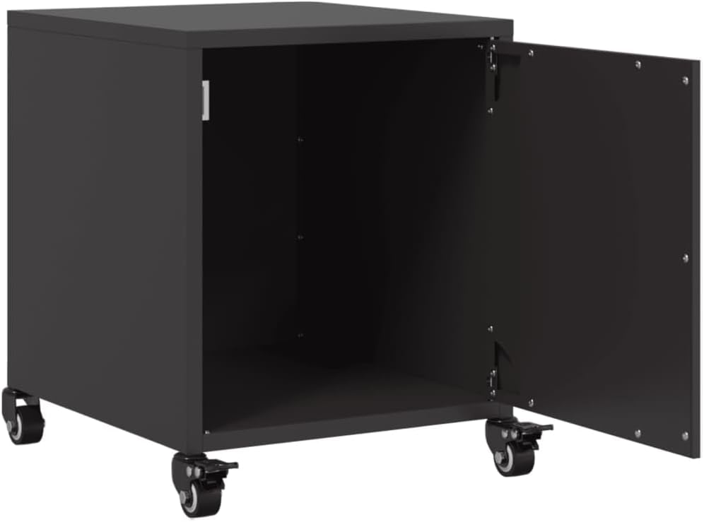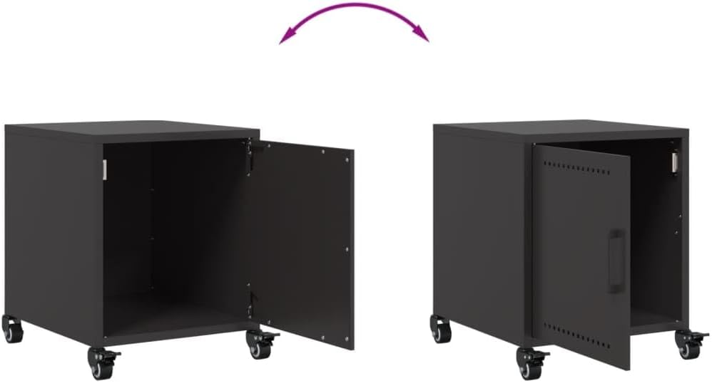 These bedside tables with an elegant design are a timeless addition to your home decor. Stable material: the frame of the bedside table is made of cold rolled steel. Cold rolled steel is a type of low-carbon steel produced by a "cold rolling" method and processed at near normal ambient temperatures. Cold rolled steel has a smoother surface, greater strength and greater accuracy. LARGE STORAGE SPACE - This cabinet provides convenient storage space to keep your magazines, books, remote controls and other small items well organized and close at hand. EASY TO CARE - The table is easy to clean with a damp cloth and requires little maintenance. EASY TO MOVE: This side table has 4 wheels, which allows it to move flexibly and park stably at any time. CONVENIENT HANDLE The bed cabinet comes with a handle that makes it easy to open and close the cabinet while adding extra beauty. Colour: black. Material: Cold Rolled Steel Dimensions: 36 x 39 x 43.5 cm (L x W x H) 1 compartment with door Assembly Required: Yes Box contents: 2 x bedside table.