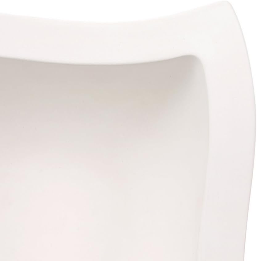 Product Description Add fluidity to your dining set with this modern 20-ounce bowl from New Wave, the trend-setting, creative range from Villeroy & Boch — purist, cool, and refreshingly original. This curvaceous dining solution is crafted with premium porcelain and is both dishwasher and microwave safe. Amazon.com A truly unique dinnerware pattern, New Wave is part of Villeroy & Boch's Metropolitan collection. Ultra chic and contemporary, each piece incorporates flowing lines, curving edges, and an exceptionally fun design. Lacking any decorative elements, the milky white china speaks for itself, while also highlighting the food or beverage intended for the individual item. Sharp corners give way to wavy sides that lift and turn like the sea, and many pieces in the line fit together in a complementary fashion. A well-defined rim frames the deep serving area of each New Wave bowl in this set of four. Measuring 6-3/4 inches on each side, and standing 2-1/2 inches high, the aesthetic curves of the square bowls create a feeling of movement when viewed from all angles. Refreshingly distinct, these wonderfully shaped tableware pieces have a unique flair that brings distinction to any meal. Crafted from vitrified porcelain with a chip-resistant glaze to ensure durability, all Villeroy & Boch tableware pieces are resilient enough to be placed in the dishwasher and microwave. --Lea Werbel
