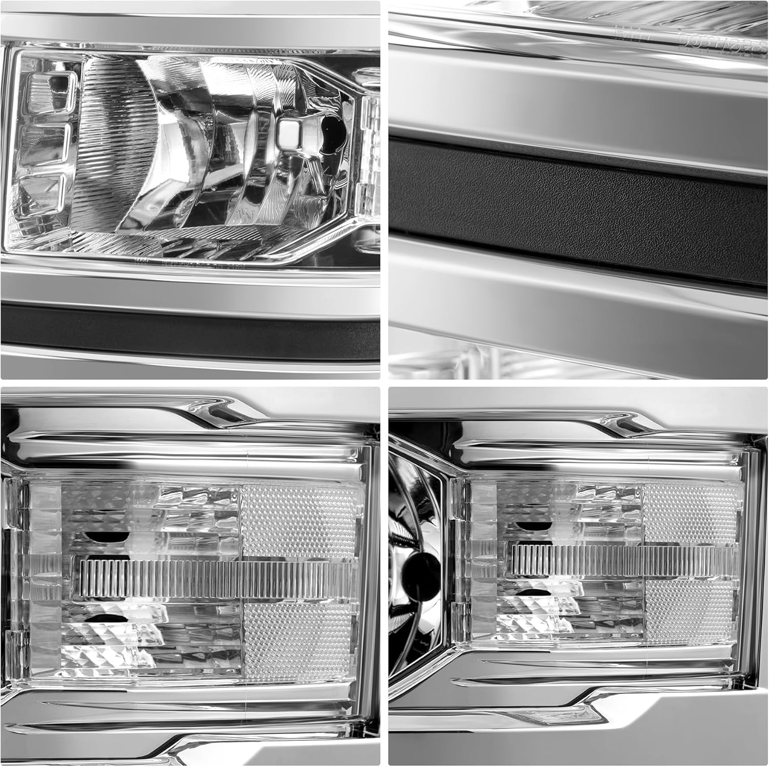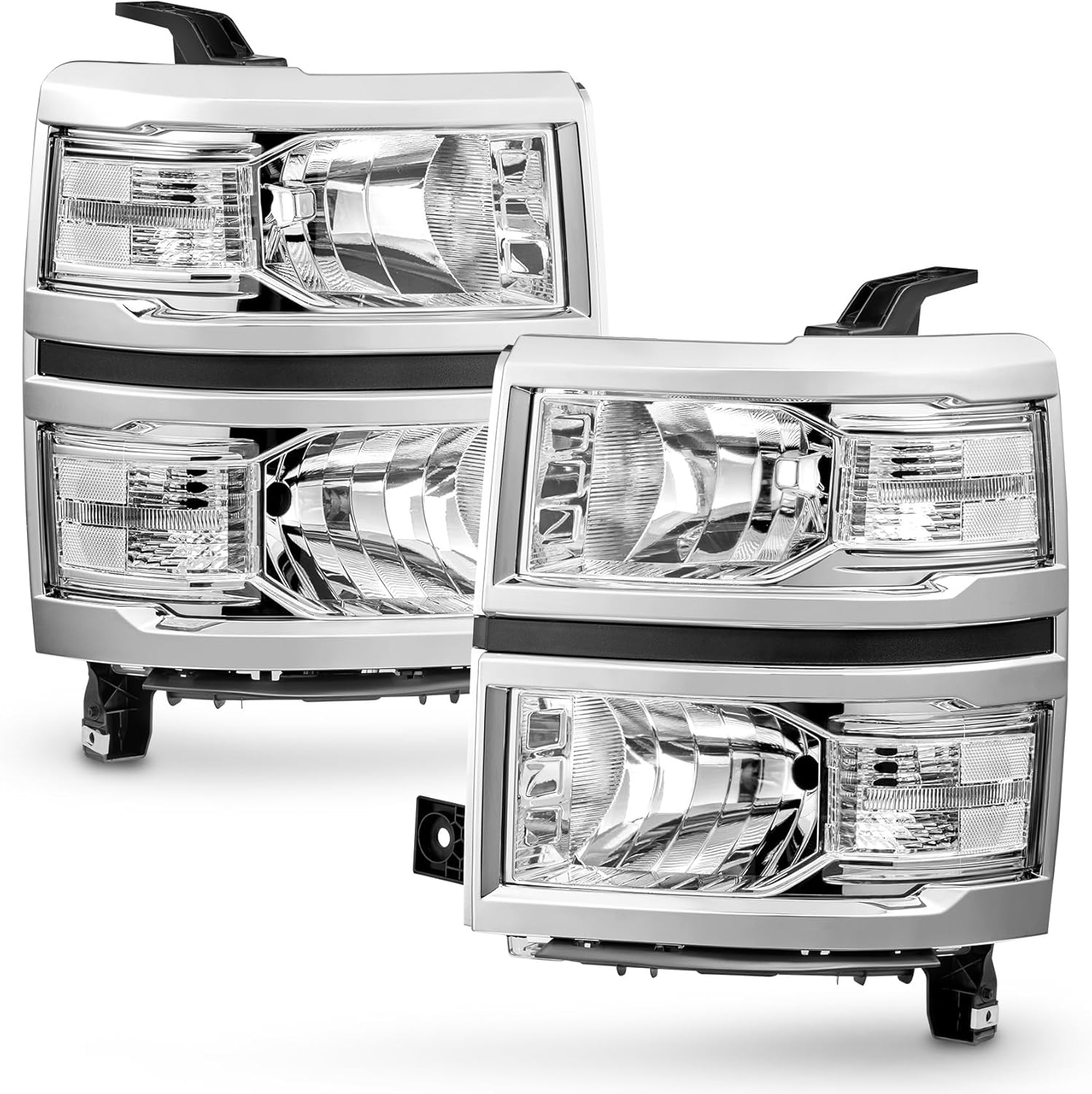 Enhance your driving safety and vehicle appearance with VRC driver and passenger side headlights. Specifically designed for 2014 Chevy Silverado 1500 (new body style models only) and 2015 Chevy Silverado 1500, these headlights install effortlessly into your vehicle's factory sockets with no modifications needed. Compliant with DOT and SAE standards and made from durable materials, these headlights offer long-lasting performance. The polycarbonate lenses ensure enhanced light transmittance, helping you drive safely in any condition, whether it's dark, foggy, or rainy. The reflectors amplify and direct the light for increased visibility and road safety by preventing glare for oncoming drivers.Material: Polypropylene, Polycarbonate Housing Color: Chrome Lens Color: Clear Reflector Color: Clear Fitment: 2014-2015 Chevy Silverado 1500 Fitment Type: Direct Replacement OEM Part Number: 20933724, 20933725, 20933722, 20933723, 23172782, 23172783 Manufacturer Part Number: GM2502389, GM2503389, GM2502395, GM2503395, GM2502410 Placement on Vehicle: Front, Left, Right Bulbs Included: No Bulb Types: 9005, H11, 7443 Certifications: DOT, SAE Headlight Dimensions: 13.8 x 15.4 x 7.5 in. (35x39x19 cm) ea. Product Weights: 16 lb. (7.3 kg)