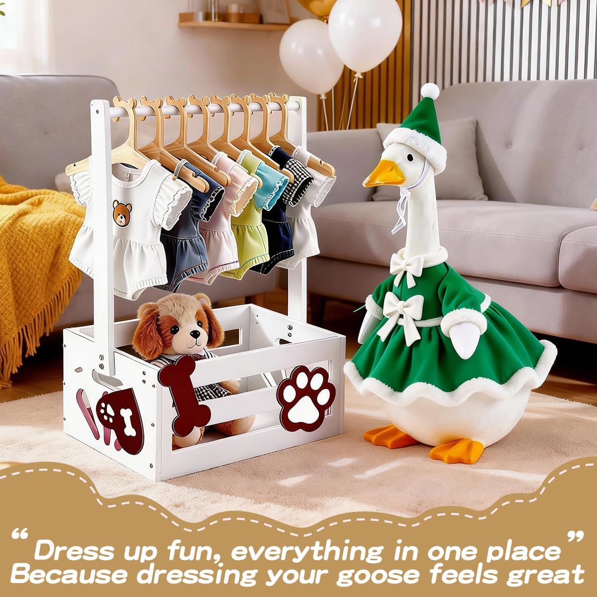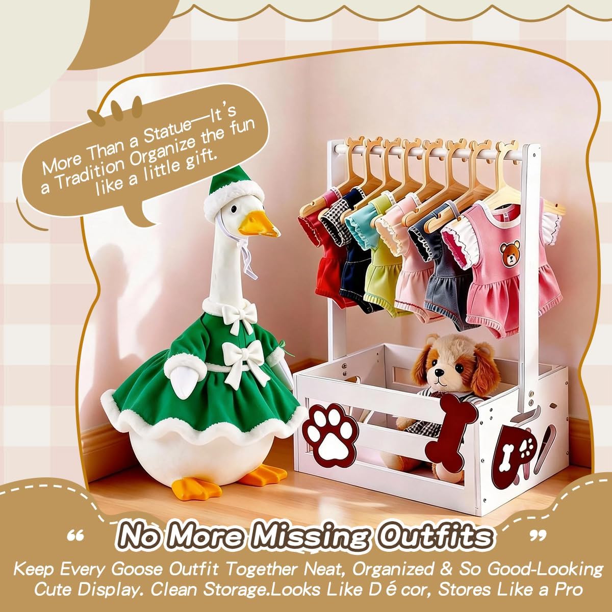 Transform your porch goose's wardrobe organization with this charming wooden closet crate box. Designed specifically for porch goose clothing and accessories, this wardrobe features practical hanging rods to keep outfits wrinkle-free and neatly displayed. The easy assembly design makes setup a breeze, while the decorative accessories add a personalized touch to your outdoor decor. Perfect for seasonal outfit changes and storing your goose's extensive wardrobe collection, this versatile storage solution helps keep your porch goose fashion organized and accessible. The sturdy wooden construction provides reliable protection for your cherished goose clothing items, while convenient baskets offer additional storage space for smaller accessories. Whether you're a dedicated porch goose enthusiast or just starting your collection, this wardrobe crate box is an essential addition to maintain and showcase your goose's outfits in style.