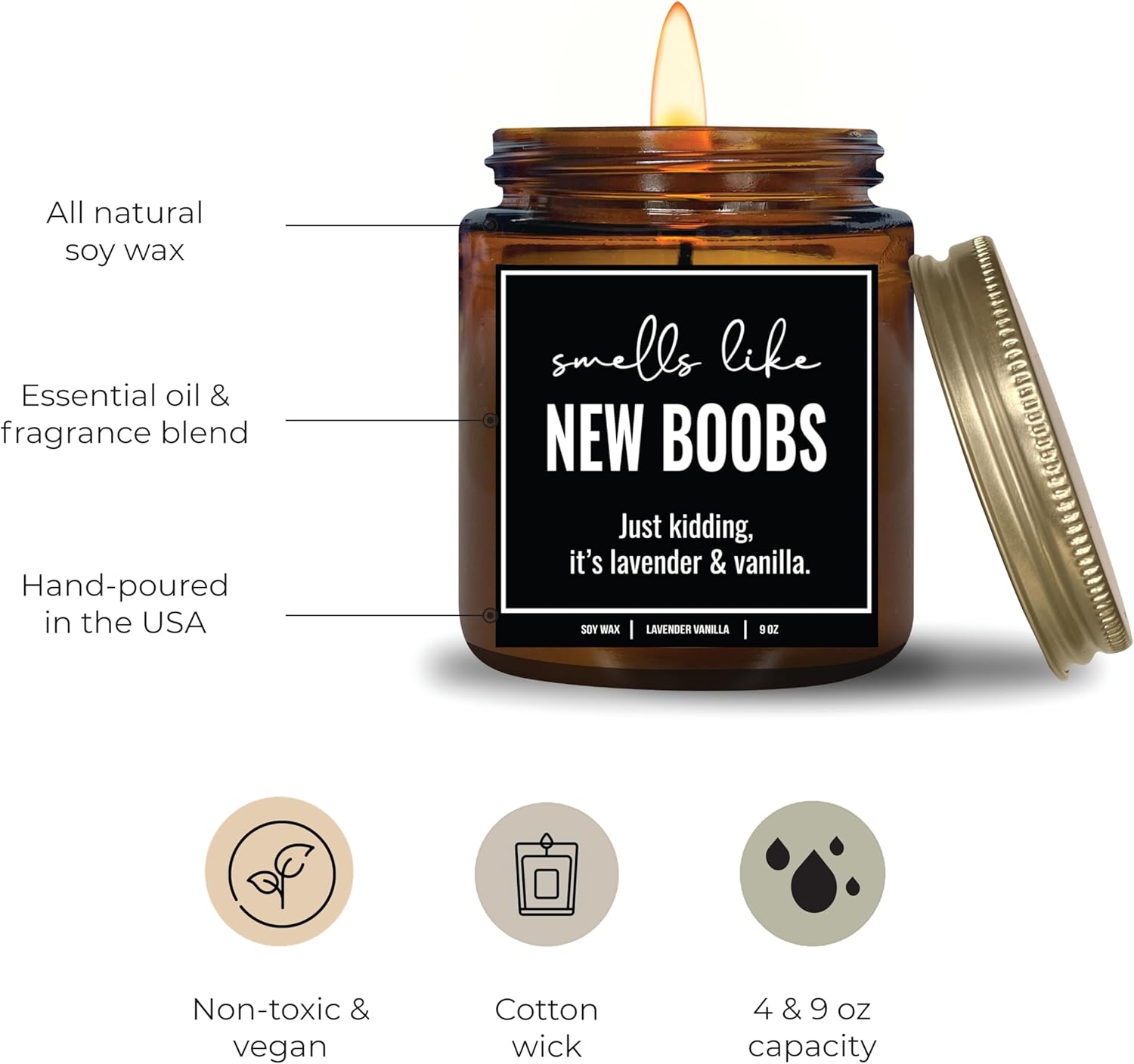 If you're looking for recovery gifts after surgery, post surgery gifts for women, post surgery gift, surgery gifts, vanilla lavender candle, after surgery gifts for women, after breast surgery gifts, after surgery gift, candles with sayings, jar candle, lavendar candles for home, or scented candles lavender send them this scented candle with the text “Smells Like New Boobs.” YouNique Designs “Smells Like New Boobs.” candles fragrance, vanilla scented candles home, recovering from surgery gifts, lavender candle for home scented, gift surgery, gift for surgery, vanilla scented gifts for women, gift of recovery, lavender scented candles, scented candles lavender vanilla, candles for living room, boob gifts, or gift for surgery recovery candle is made from 100% natural soy wax that gives you a slow and clean burn. Your satisfaction is always our top priority! We packed your lavender scented candle in safe packaging so you’ll receive the scented candle safe, intact & damage free.