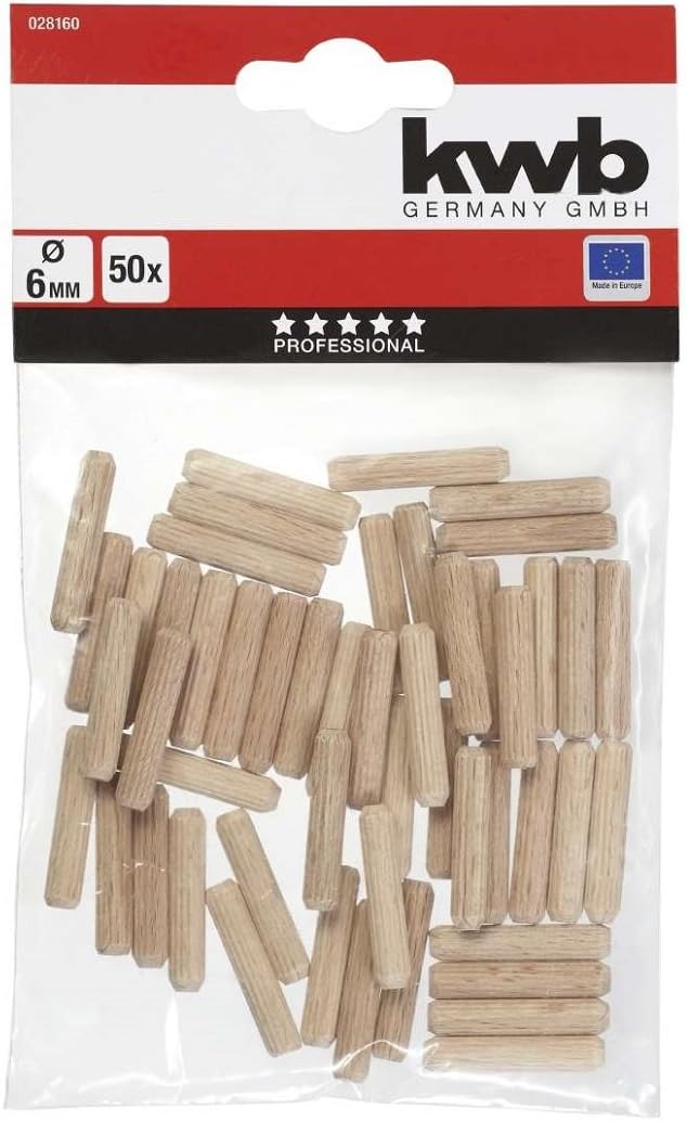 Ribbed, chamfered, beech wood dowels. Ideal for most joinery applications.Pack of 50 kwb Wooden Dowels 6mmPTDKWB028160