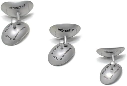 Safeguard your eyes with this set of corneal eye shields from Medfort-Instruments. These stainless steel protectors come in three different sizes - small (26mm X 17mm), large (29mm X 21mm), and extra-large (32mm X 21mm) - to accommodate various eye shapes and sizes. The shields feature a holding point for secure placement and easy removal. Protect your eyes during medical procedures, laboratory work, or any activity where eye safety is paramount. This set includes three pairs, one of each size, conveniently stored in a compact carrying case. With their durable construction and precise fit, these corneal eye shields offer reliable protection for your precious vision.