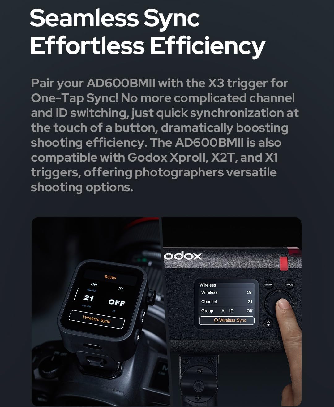 | Compatible Devices | Godox X3, Godox XproII, Godox X2T, Godox X1 |