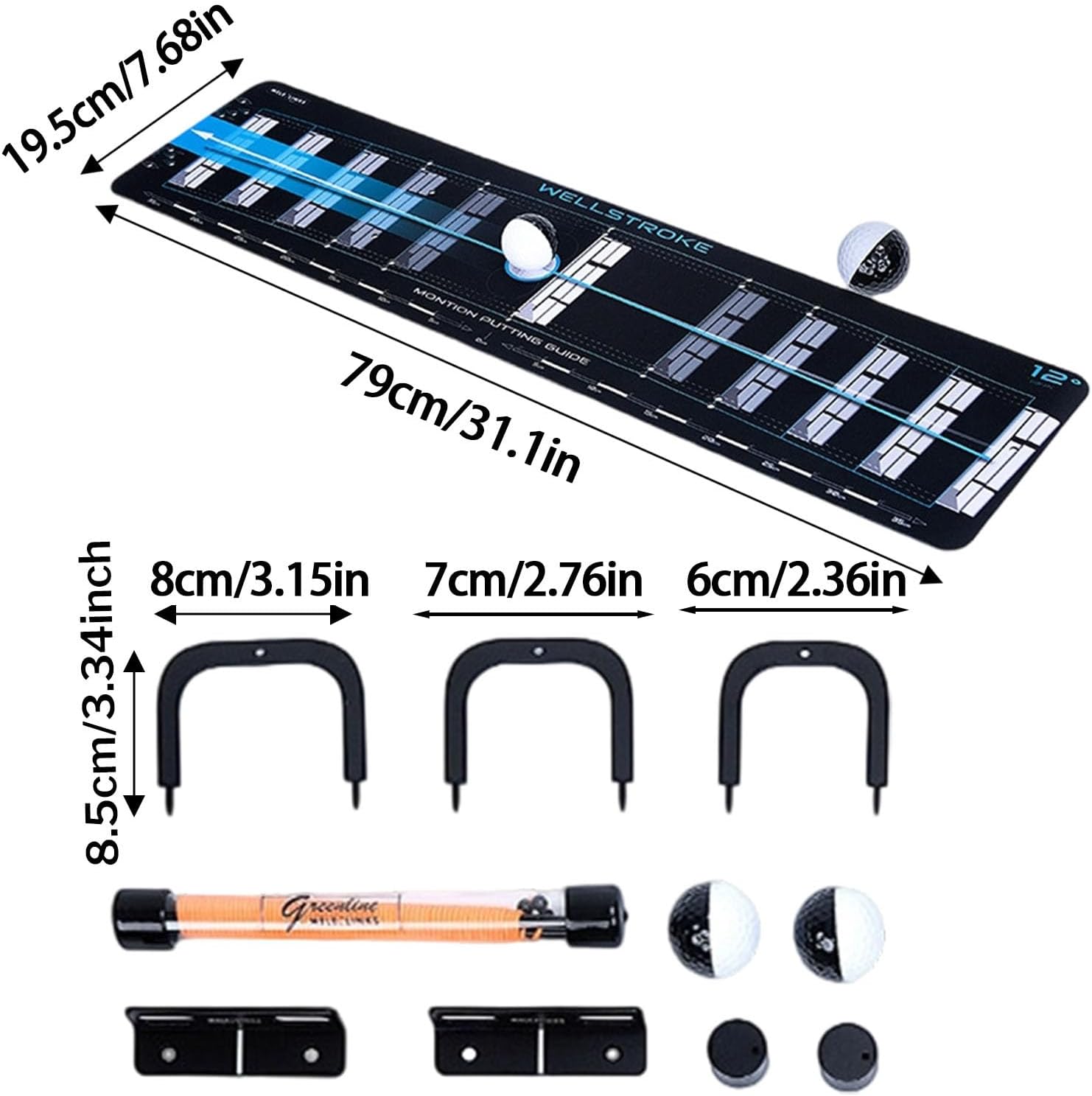 The golf putter alignment aid is a key tool for outdoor training and exercise, designed to enhance precision and consistency on the greens. This versatile product caters to beginners, men, women, and seasoned golfers alike, making it a perfect addition to any enthusiast's collection. Ideal for family use, it allows mothers, fathers, and loved family members to practice together, fostering shared enjoyment of the sport. Crafted with attention to detail, this alignment aid supports proper skill during putting practice, ensuring accurate alignment every time. Elevate your game outdoors with this must-have golf training supply, suitable for all skill levels and ages.SpecificationProduct Size:Putting template training mat: 79x19.5cm/31.1x7.68 inchesThree push rod doors: 8.5x6cm/3.35x2.36 inches8.5x7cm /3.35x2.76 inches8.5x8cm /3.35x3.15 inchesList1 set x golf putting practice toolNotes: 1. Due to the lighting effects and photographing angles, there is a color difference in the product. Please understand.2. Due to manual measurement, there is a tolerance in the product size.