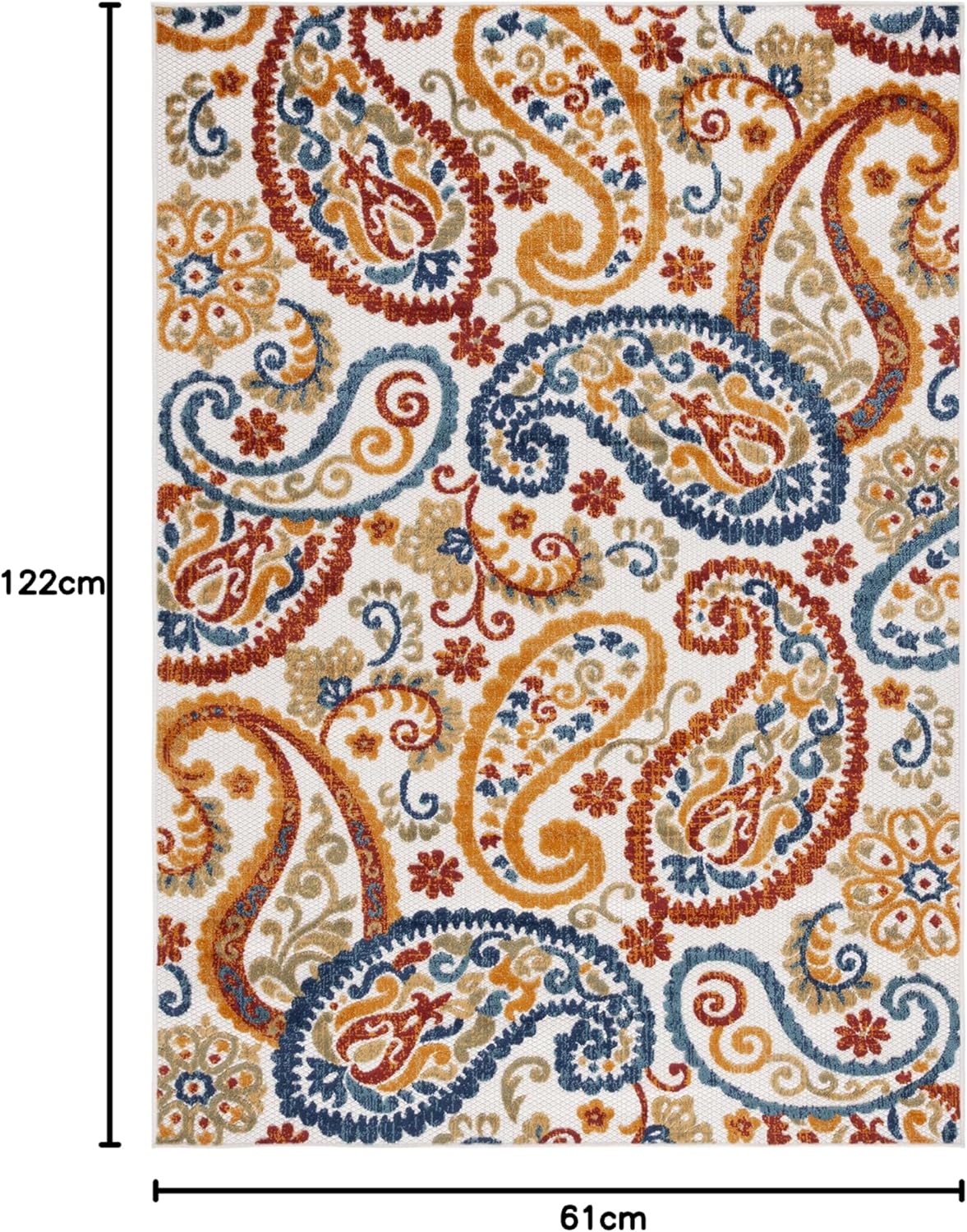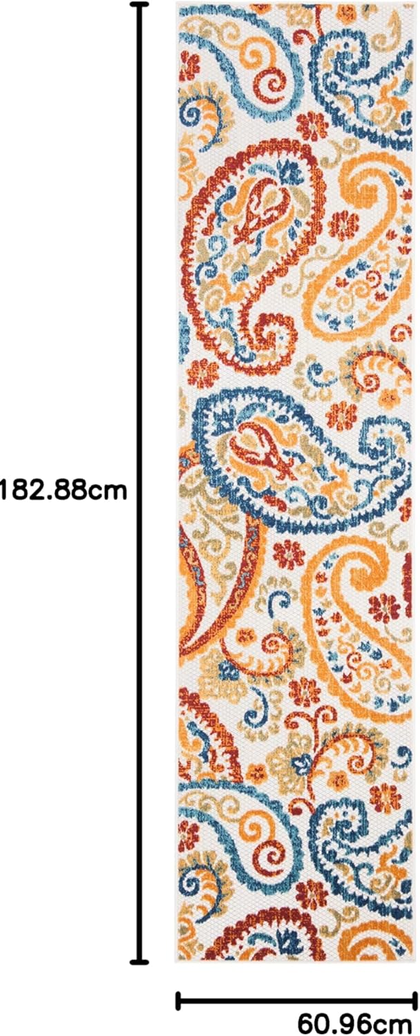 Cabana Indoor-Outdoor area rugs bring a splash of color and pattern to any living space. Their sturdy polypropylene material makes them ideal for rain or shine. With charming floral patterns, These rugs work beautifully in the kitchen, sunroom, entryway, family room, patio, or mudroom.