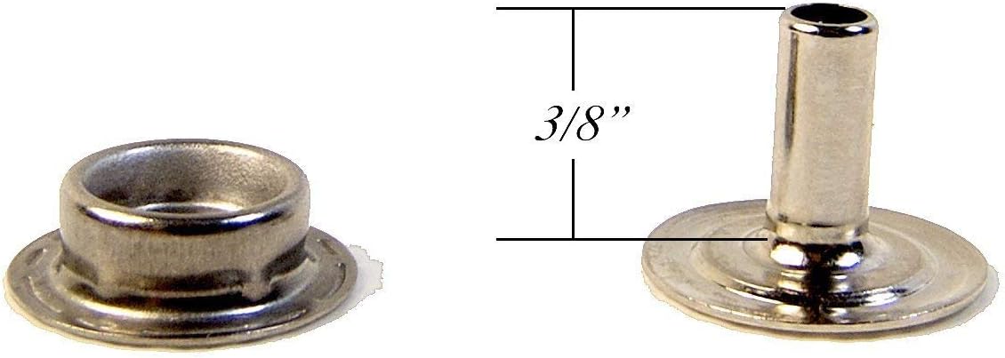Snap Set with Extended Length Cap Post 1/4" & *Eyelet Post 3/8" Snaps are Standard Size Line 24, 3/8" 20 of Each Piece *Eyelet is Nickel Plated Brass. Top Quality Snap Fasteners, Marine Grade. Superior snap action and holding strength. Heavy-duty construction assures a firm grip that will remain secure through years of use All Stainless Parts, except the bottom *Eyelet and that piece is Nickel Plated Brass